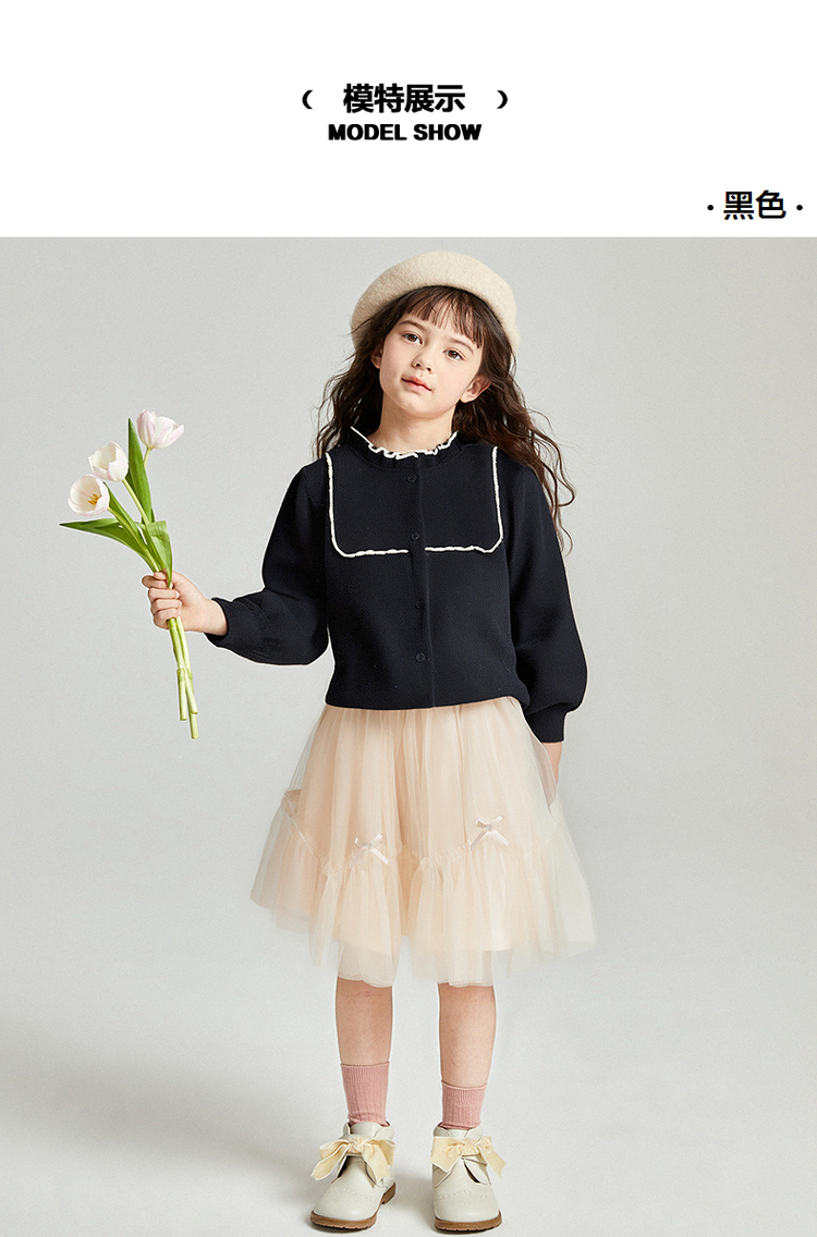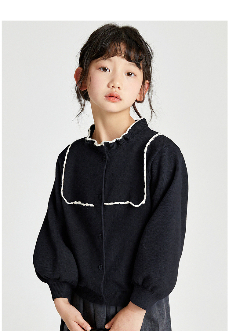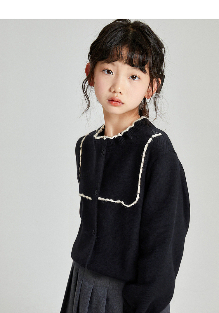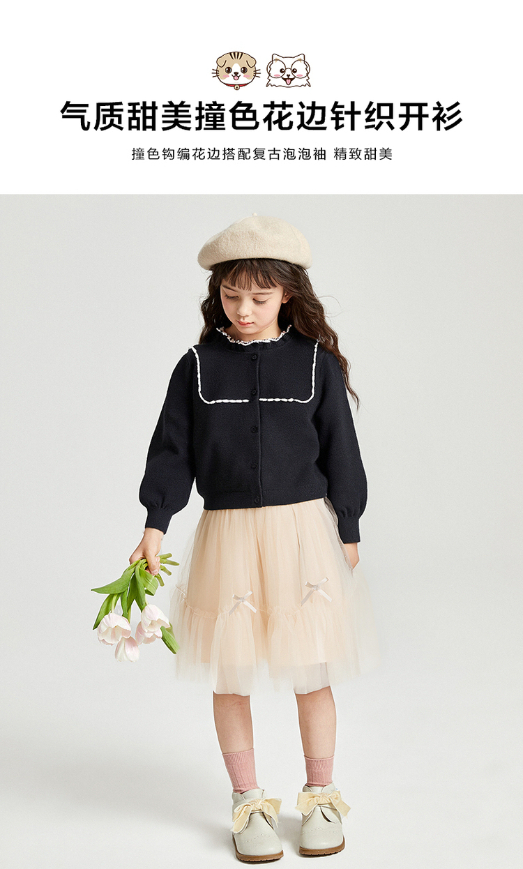 笛莎Deesha 2025秋季新款女童气质甜美撞色花边针织开衫