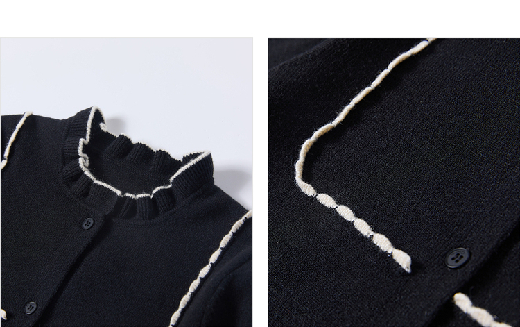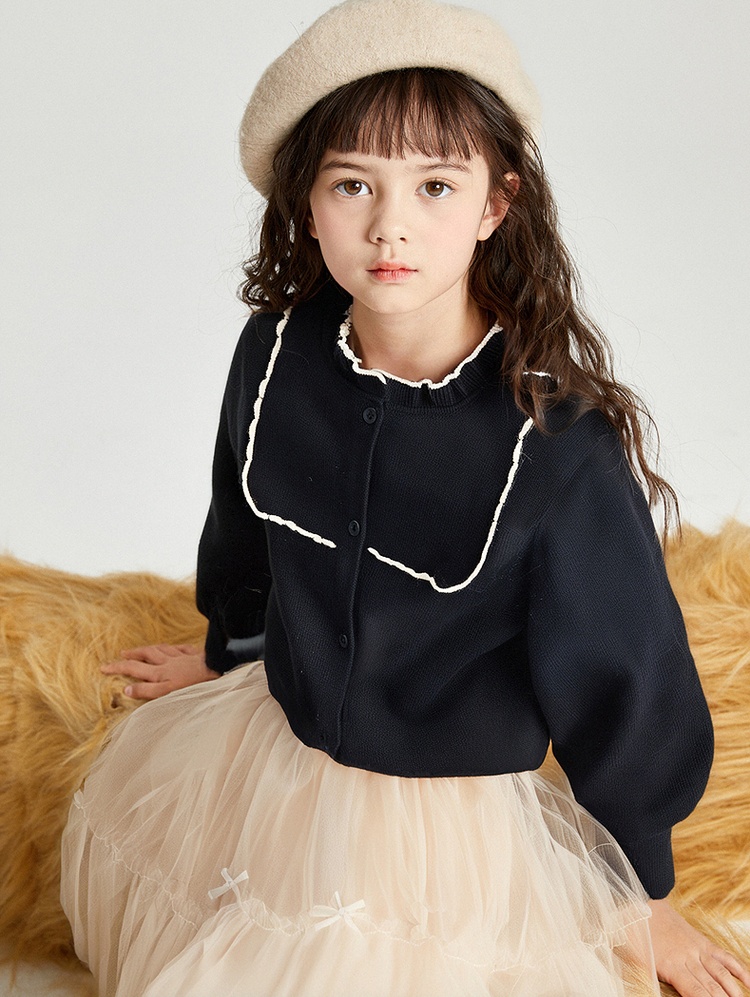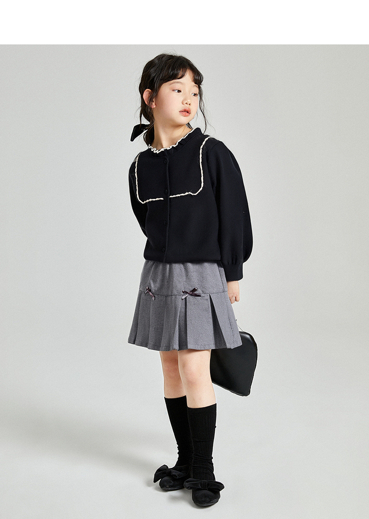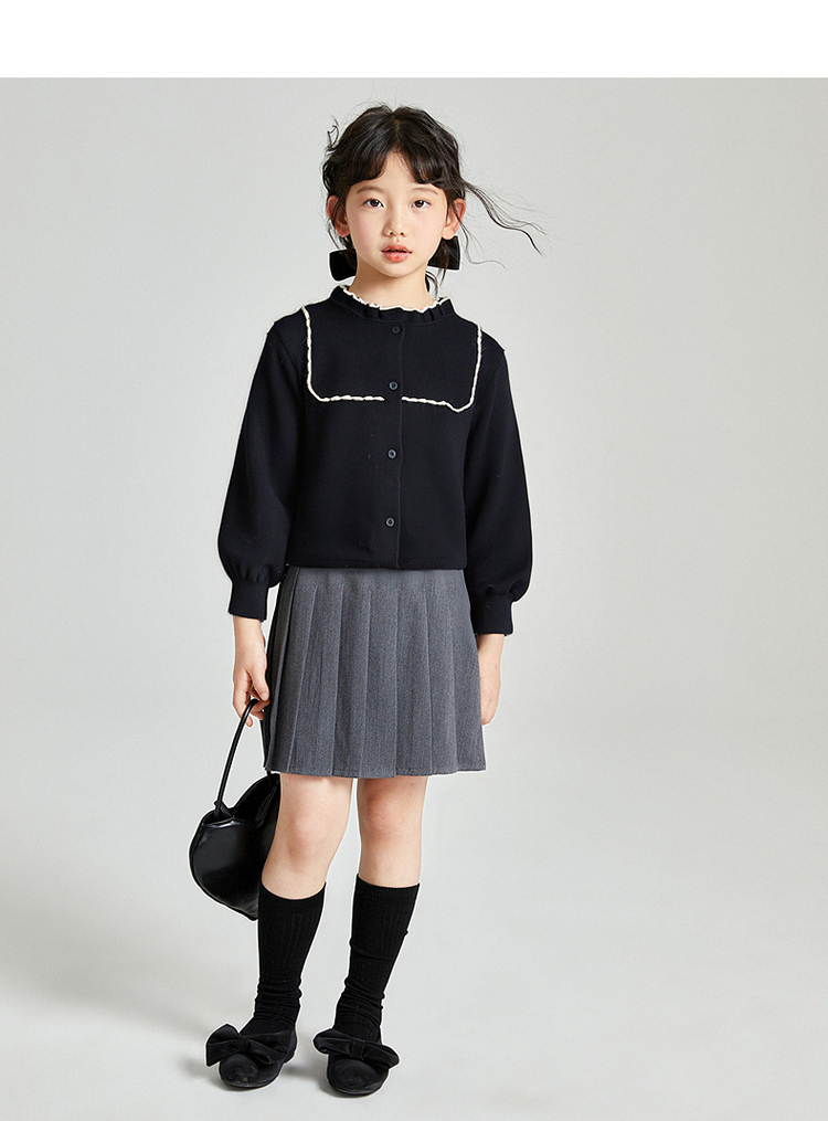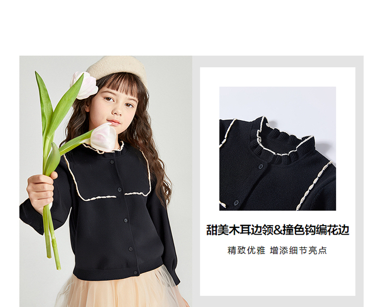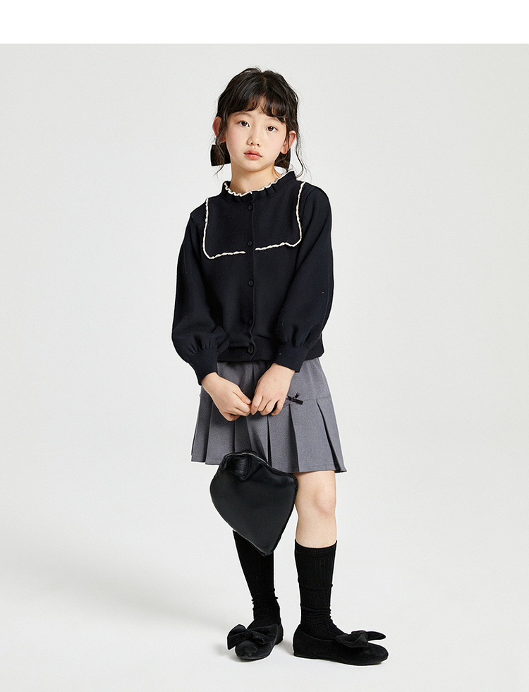 笛莎Deesha 2025秋季新款女童气质甜美撞色花边针织开衫