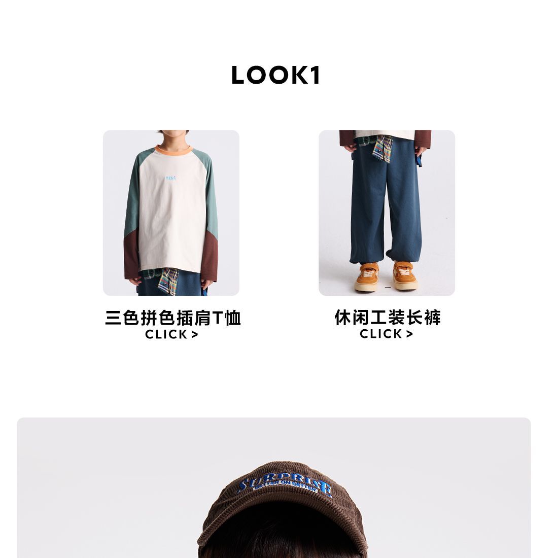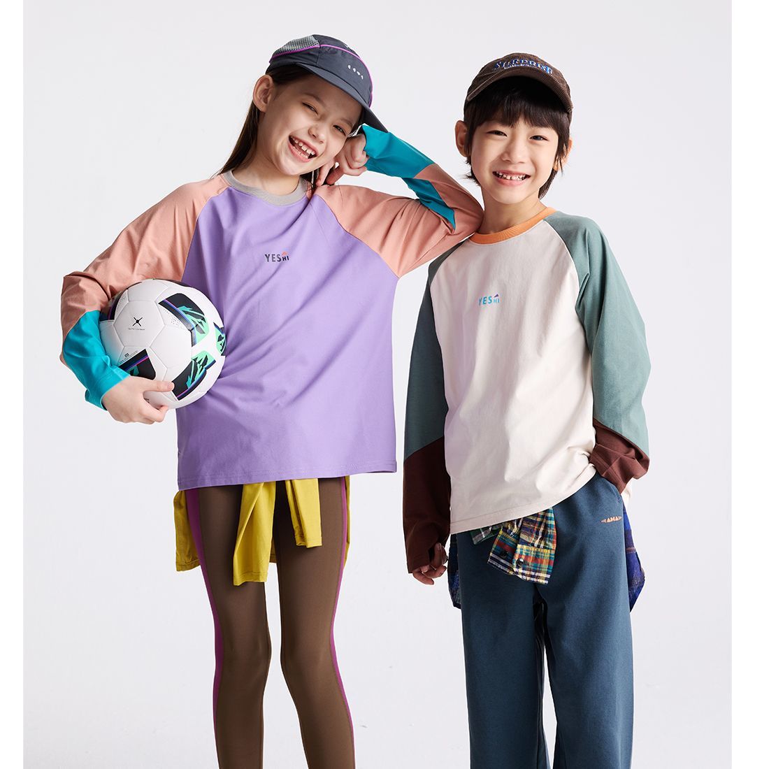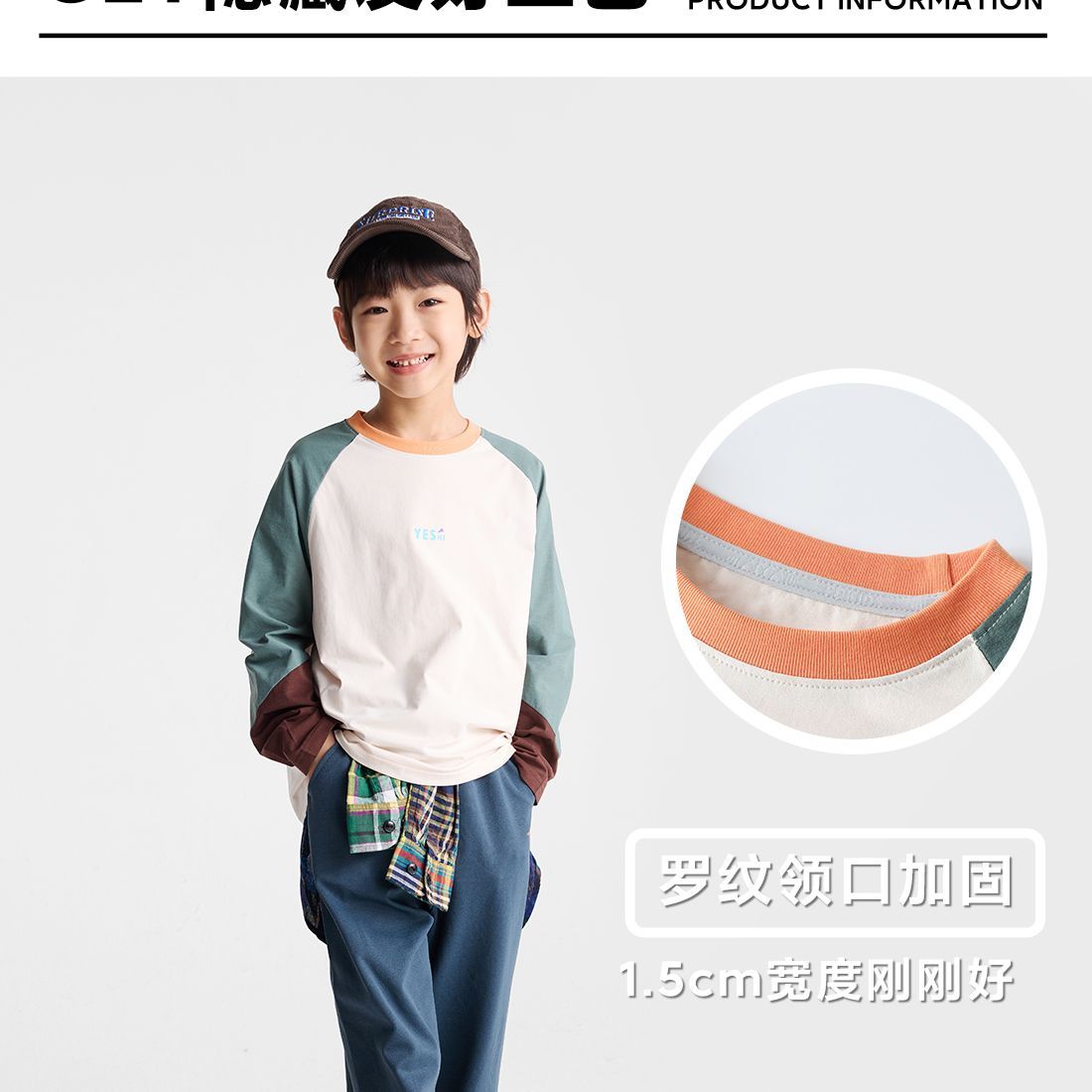 【咕噜日记】儿童圆领长袖索罗娜T恤2025秋季男女童拼色打底休闲上衣PQTX2543-PQTX2544