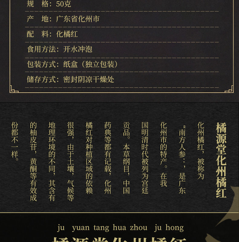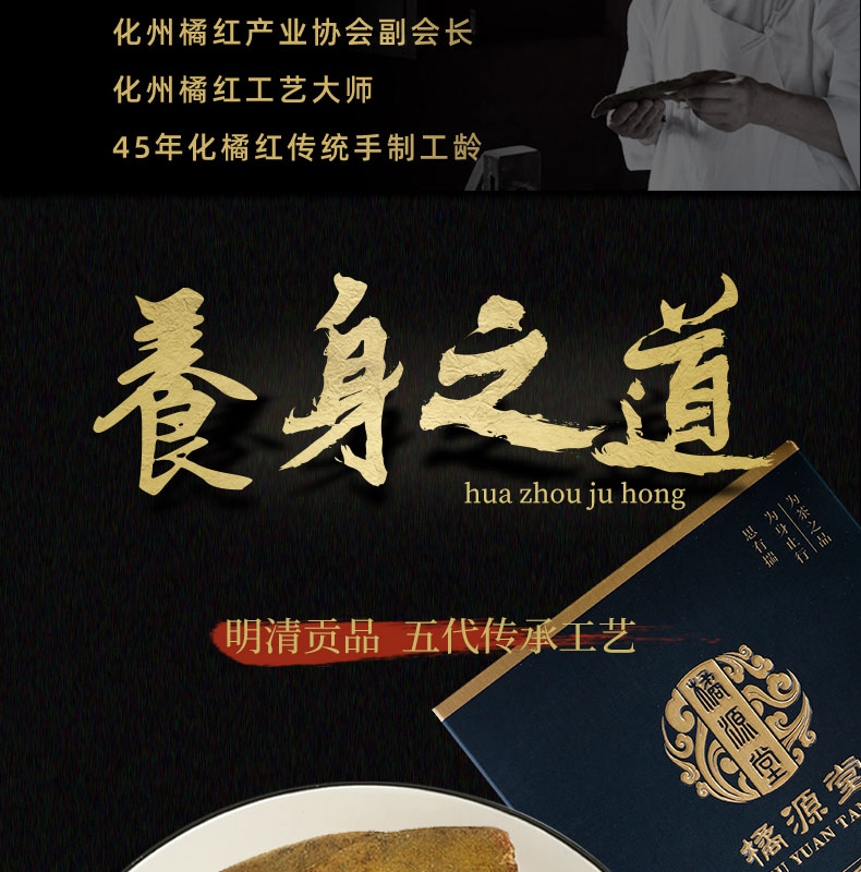 化州橘红【20年陈· 正一品】国家地理标识产物 咳嗽痰多自用款 办公室教师讲话多者宽中气顺 橘源堂化州橘红皮 50g/盒【约20包】