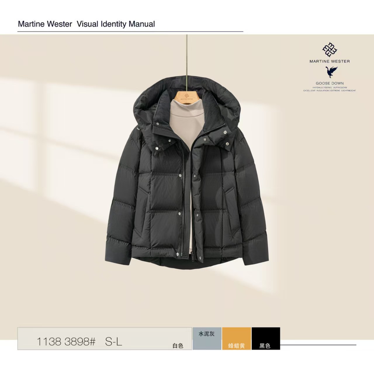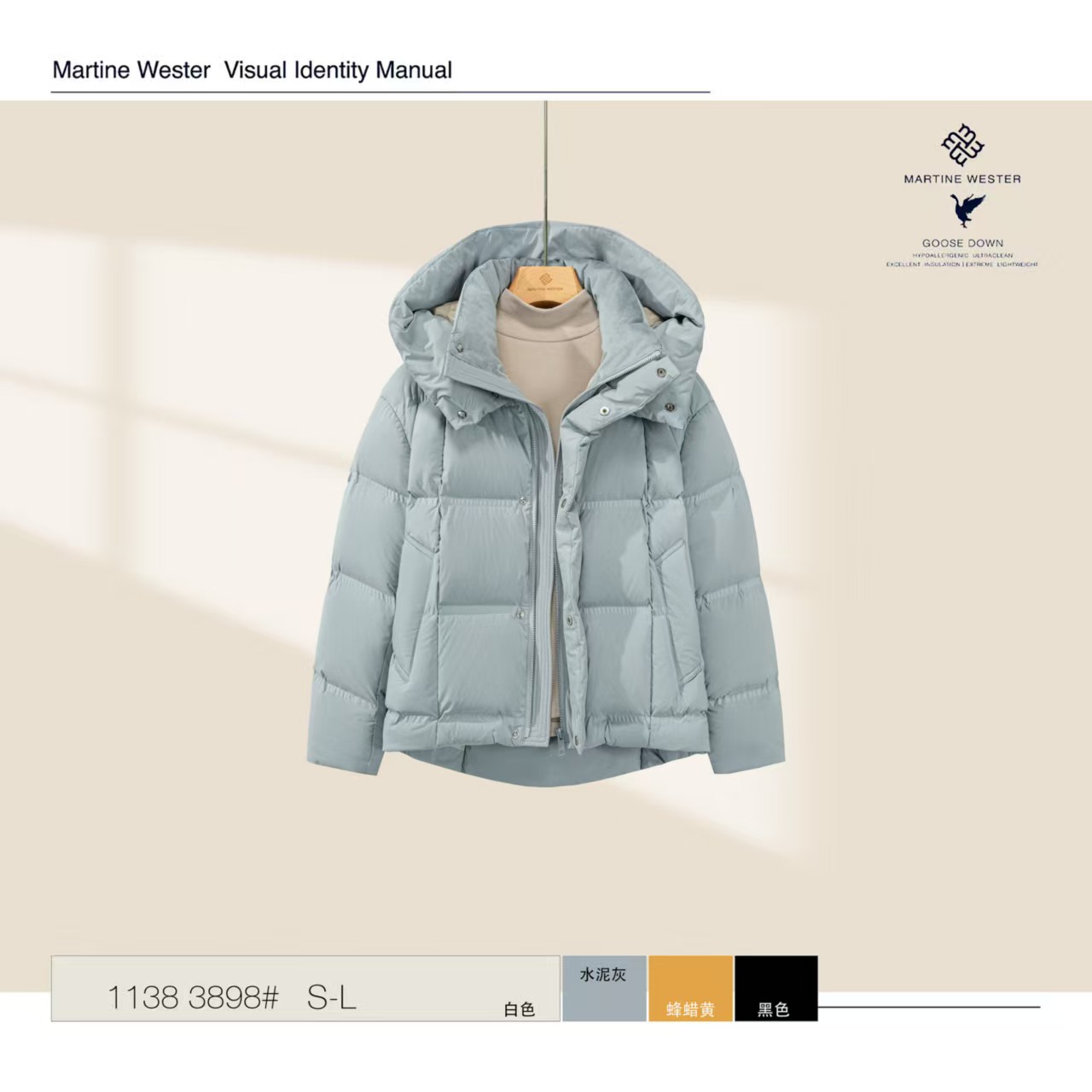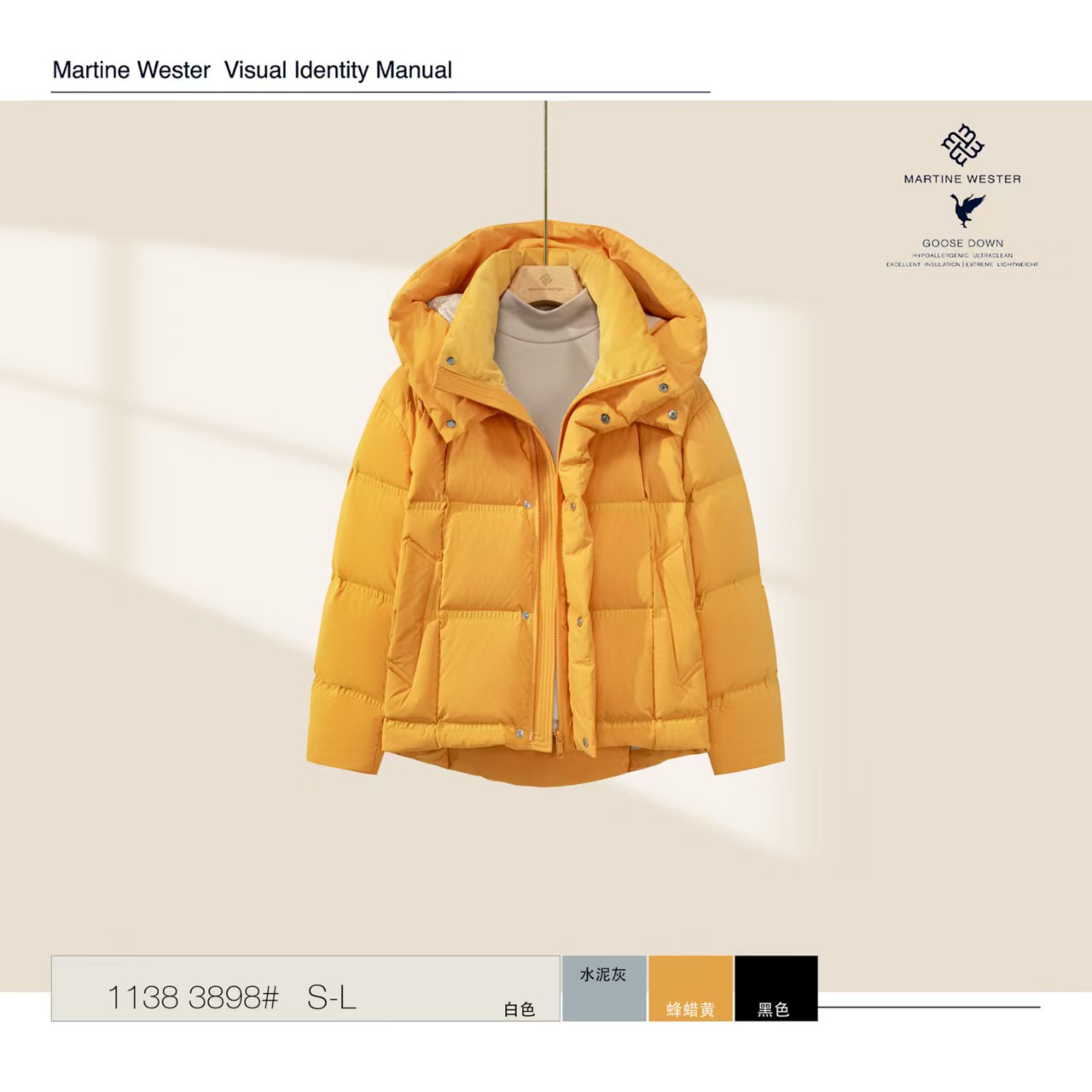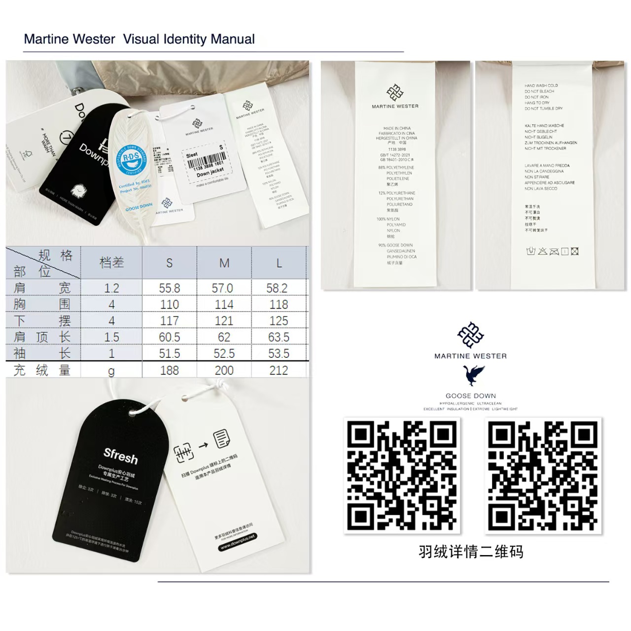 Martine Wester 女款机织直充面料可脱卸帽小落肩鹅绒服; 超高密度双层直充面料,YKK品牌定制拉链,定制安心鹅绒:绒子含量90% 每一件衣服都有专属二维码可追溯 廓形帅气大牌感十足,帽子脱卸后,立领精神干练