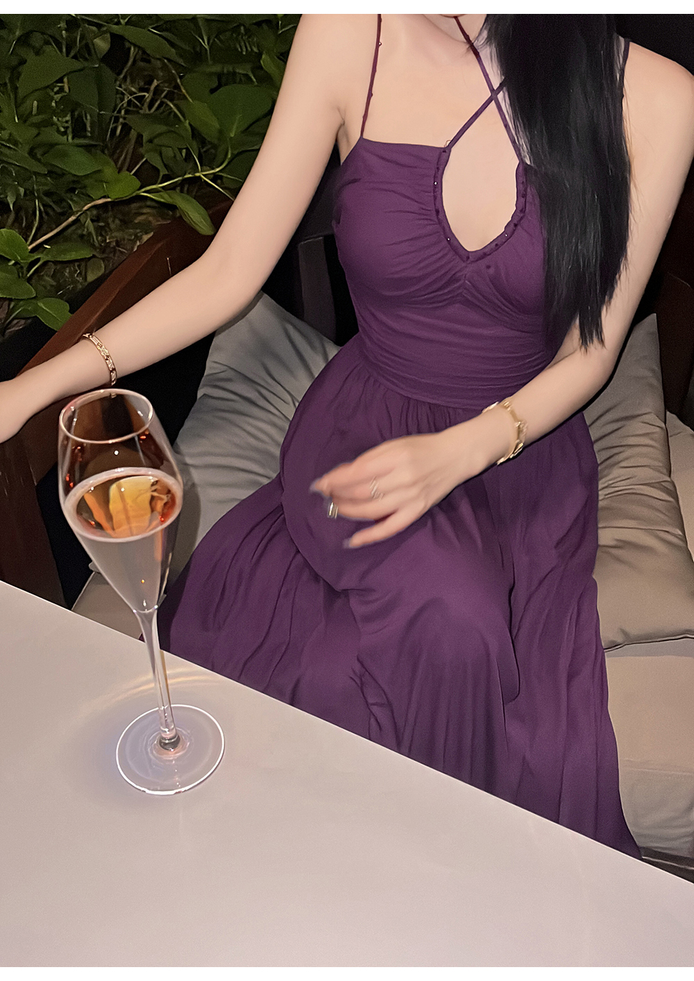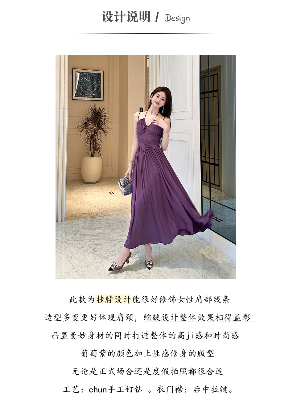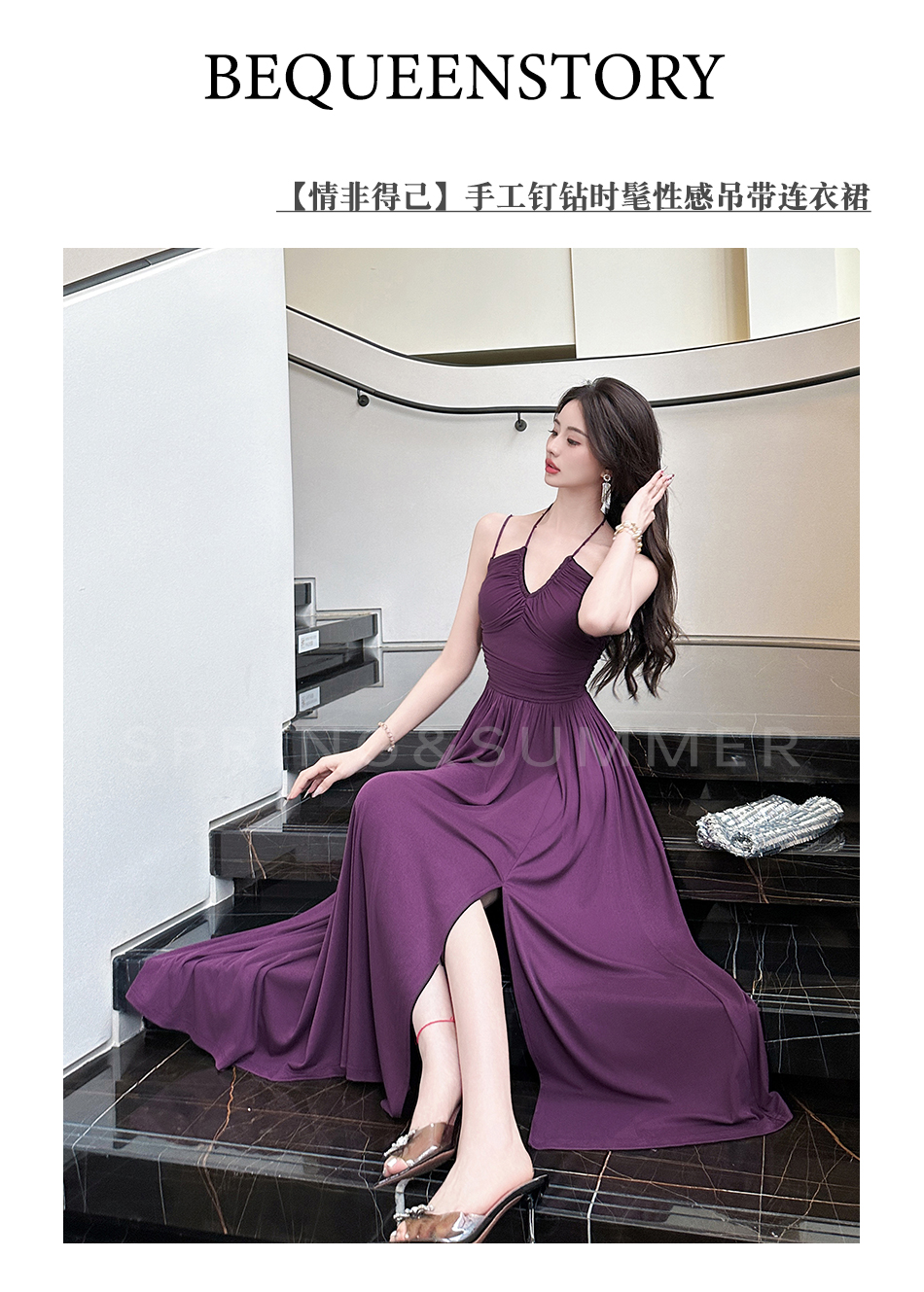 【七夕福利,不退不换】 【情非得已】法式设计感手工钉钻时髦性感吊带连衣裙