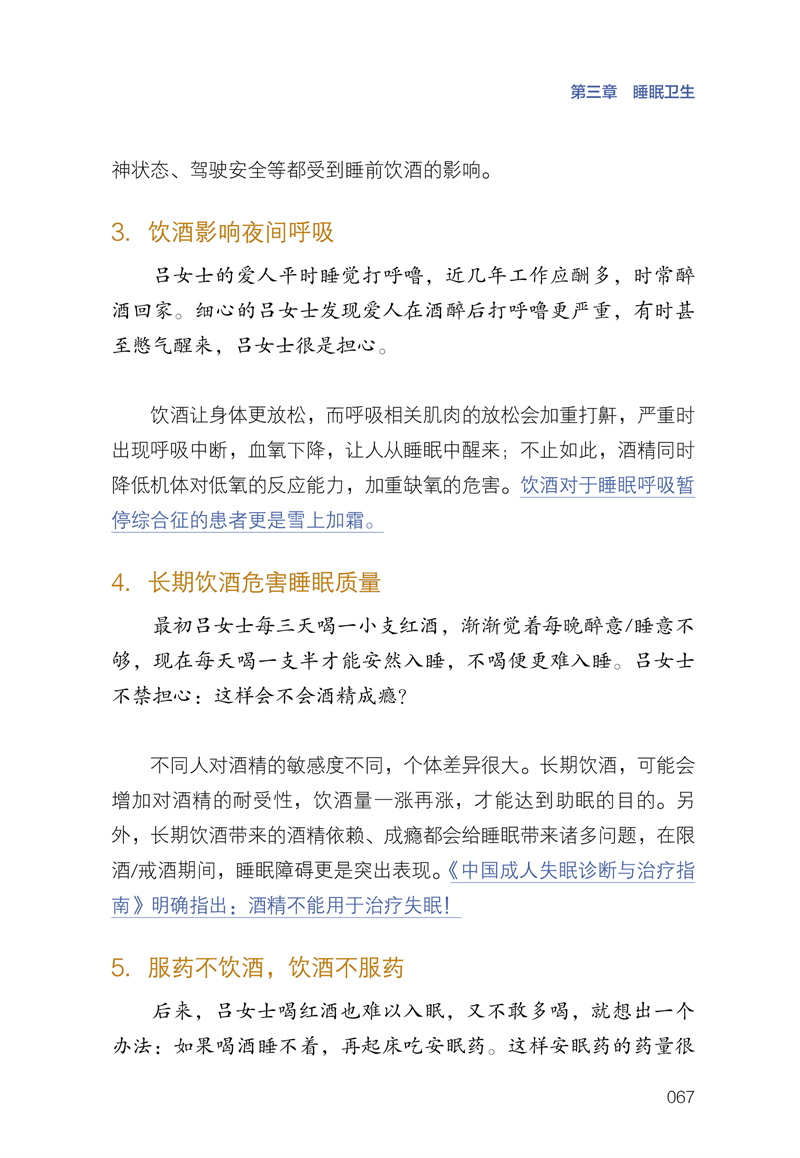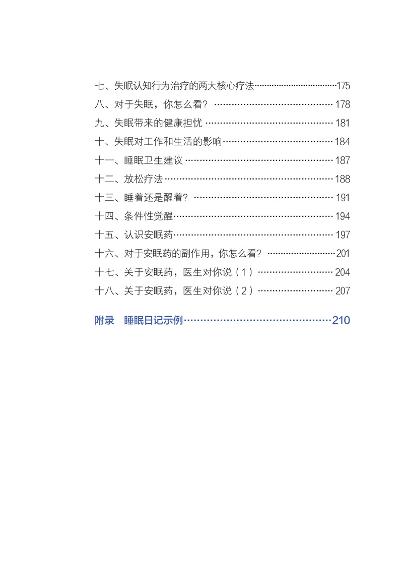 这是一部关于睡眠的科普书。本书以患者切身的小故事引出睡眠相关问题,以问题为导向结合医生点评,旨在通过深入浅出、图文并茂的方式,向广大读者,尤其是失眠患者及其家属,介绍睡眠知识、失眠原因和治疗方法。本科普书共6章,分别为睡眠节律、睡眠内容、睡眠卫生、睡眠波动、睡眠与疾病和失眠,共列出66个常见的失眠相关问题。本书适合广大普通群众阅读,从中学习调节睡眠的好方法,也适合睡眠理疗师阅读,从中汲取与患者有效的沟通经验。
