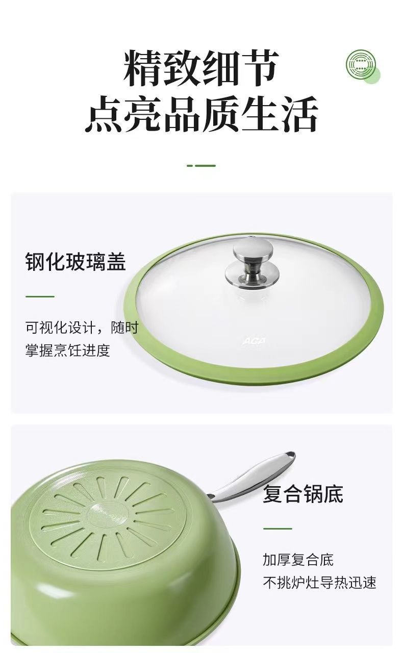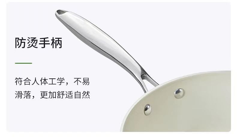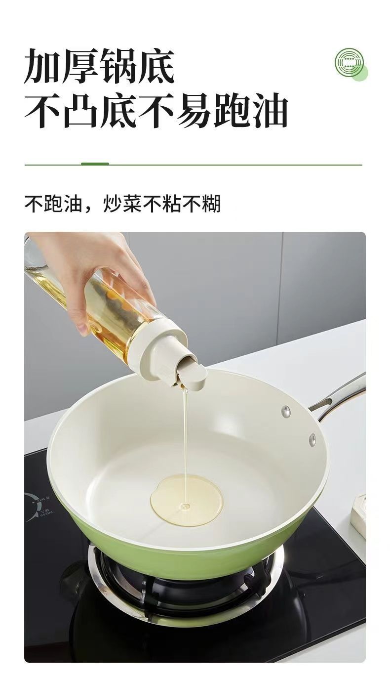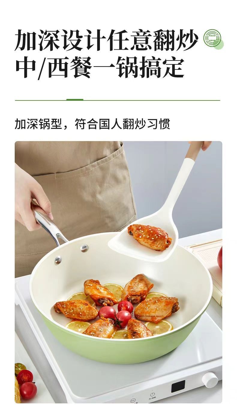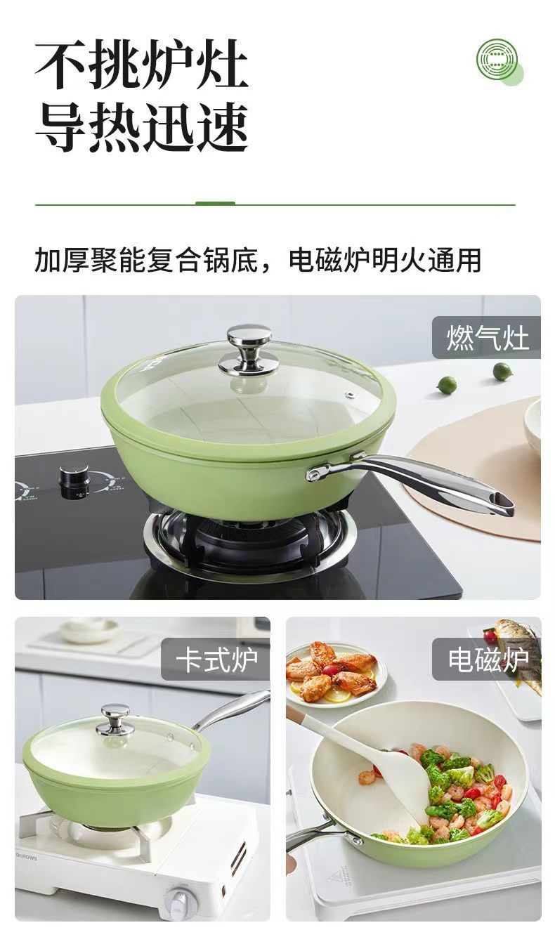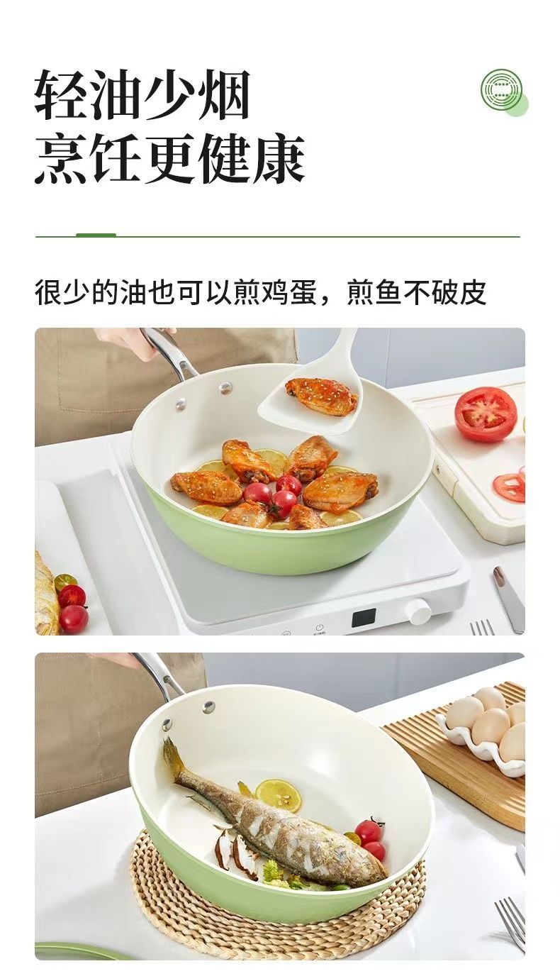 「果绿高颜值!陶瓷不粘锅」新款炒菜锅一锅双瓷家用炒锅电磁炉平底锅燃气灶炒菜锅厨房用品餐饮用具