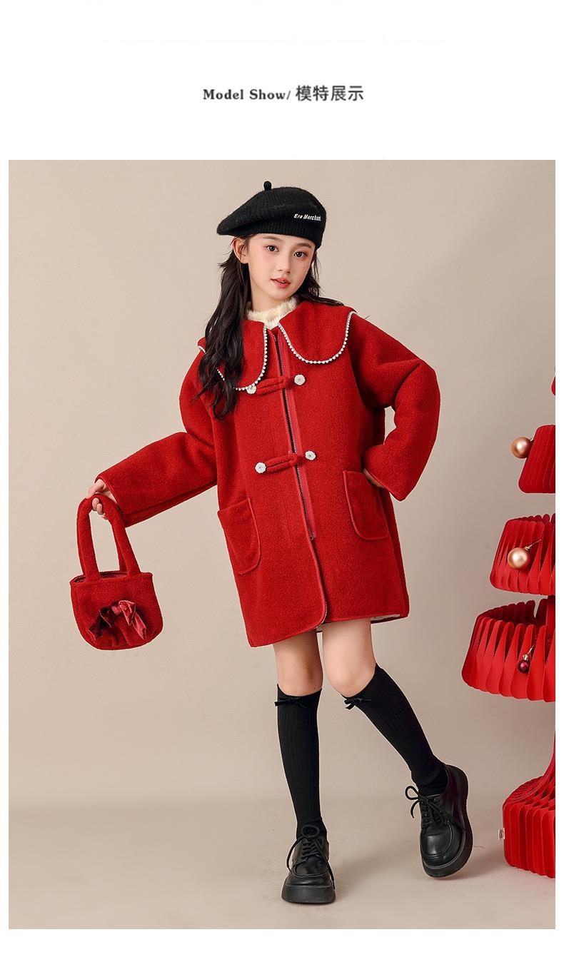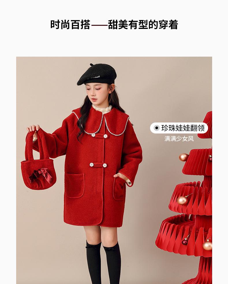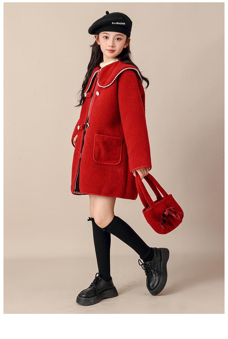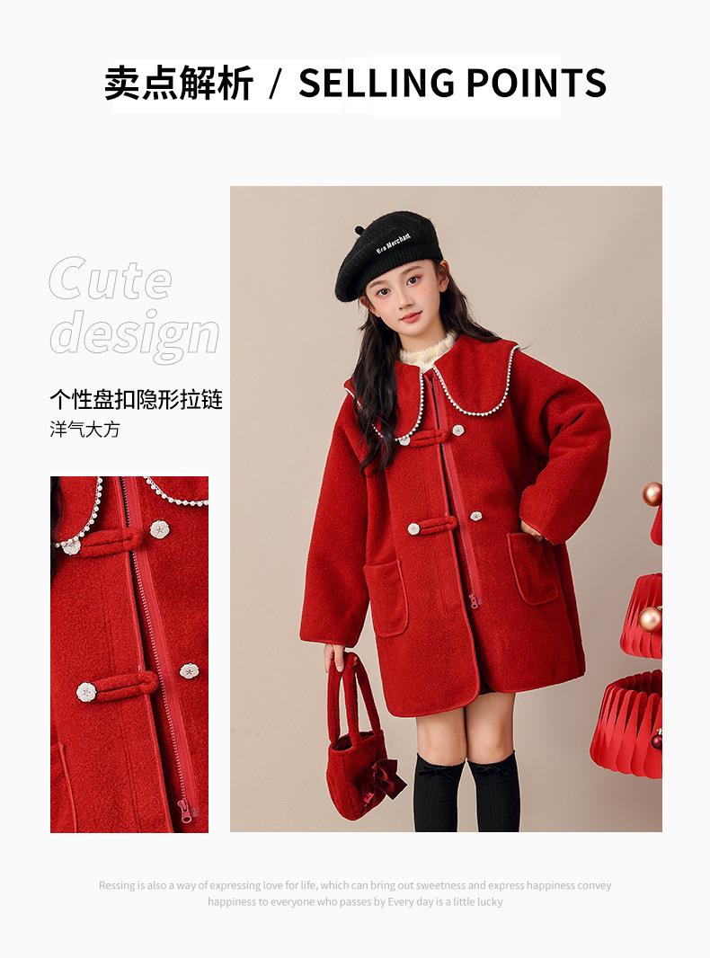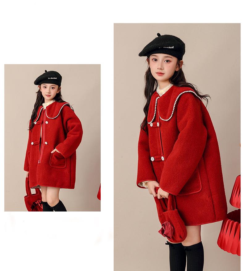 新款毛毛外套大童拜年服冬装加绒加厚呢大衣儿童女童2025红色冬季