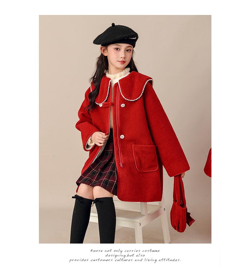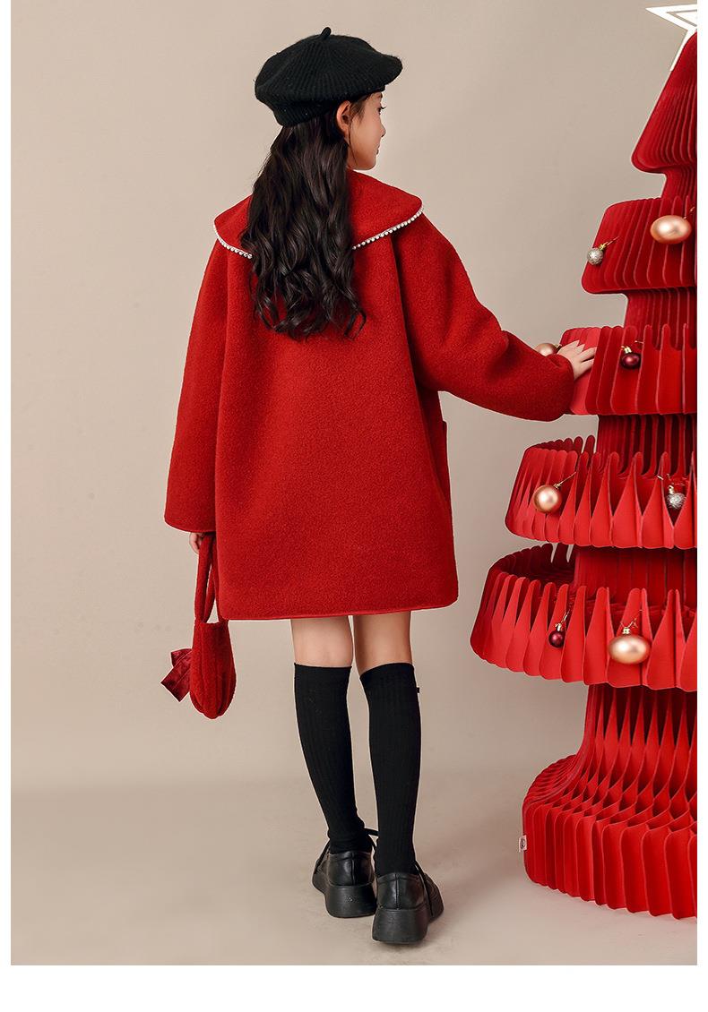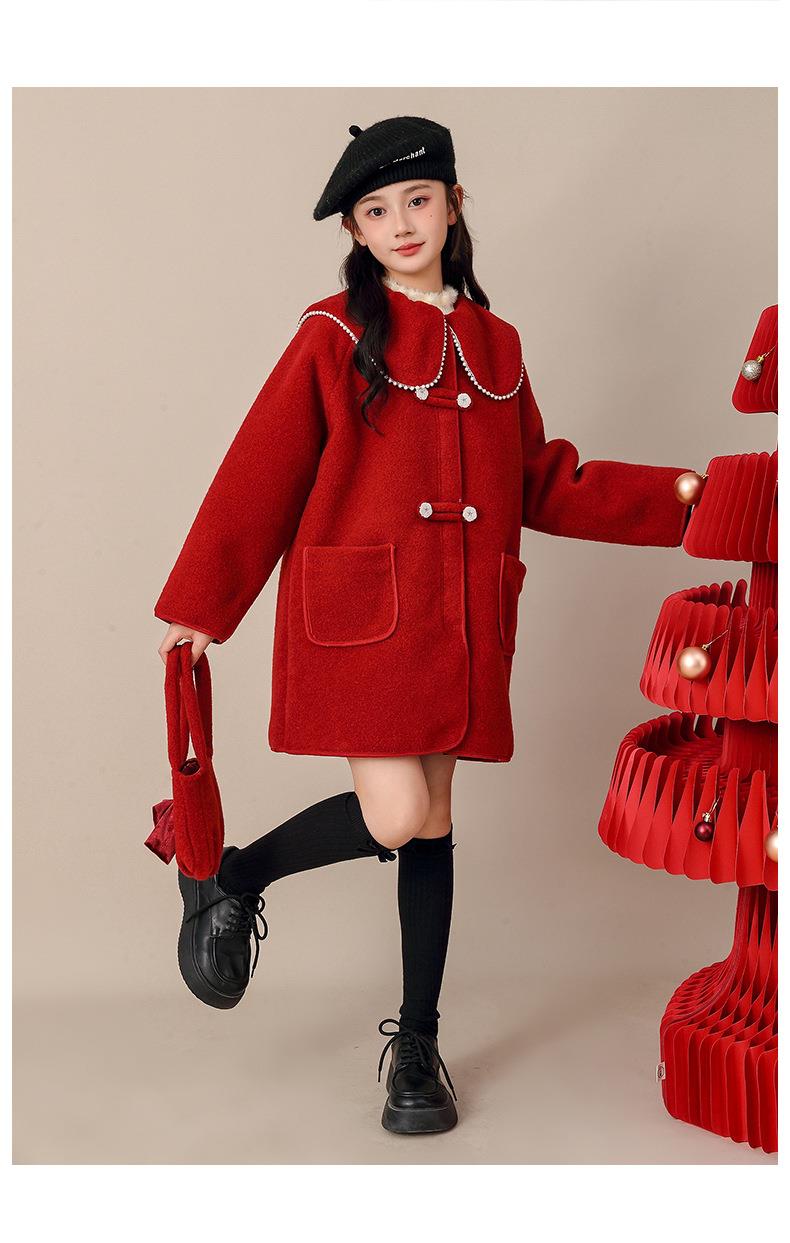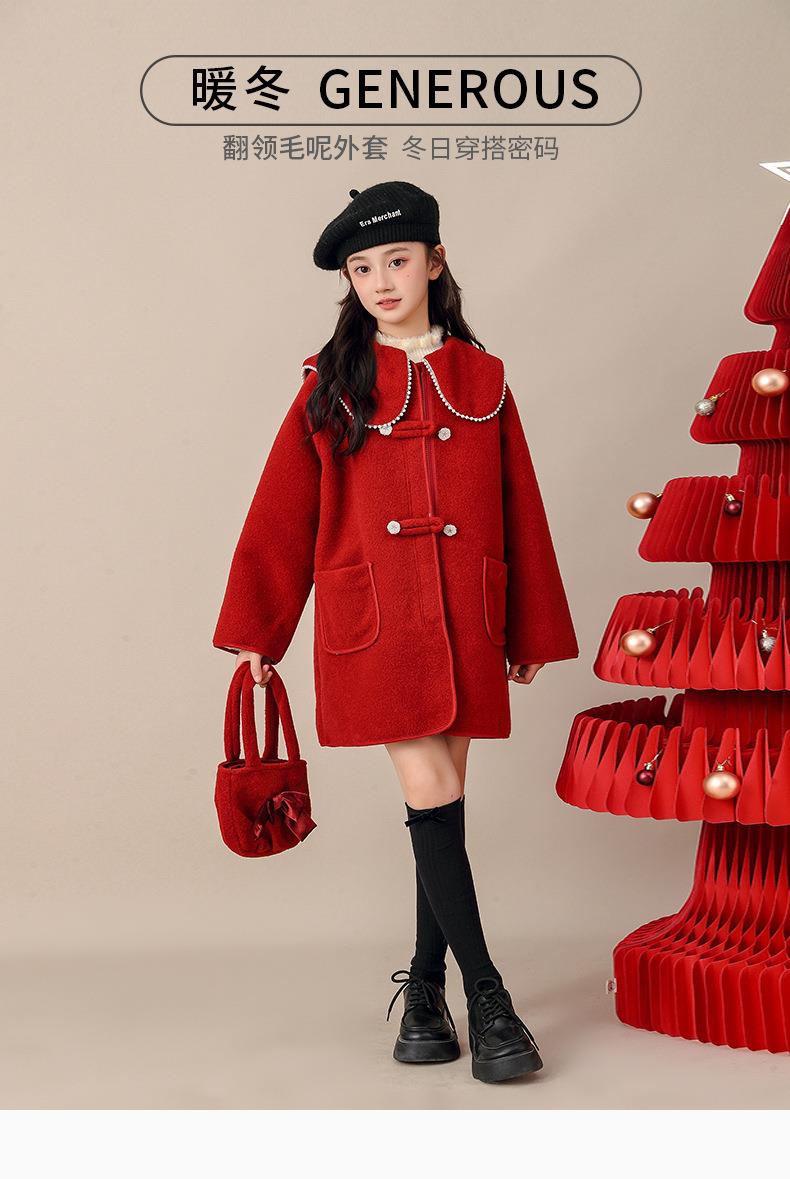 新款毛毛外套大童拜年服冬装加绒加厚呢大衣儿童女童2025红色冬季