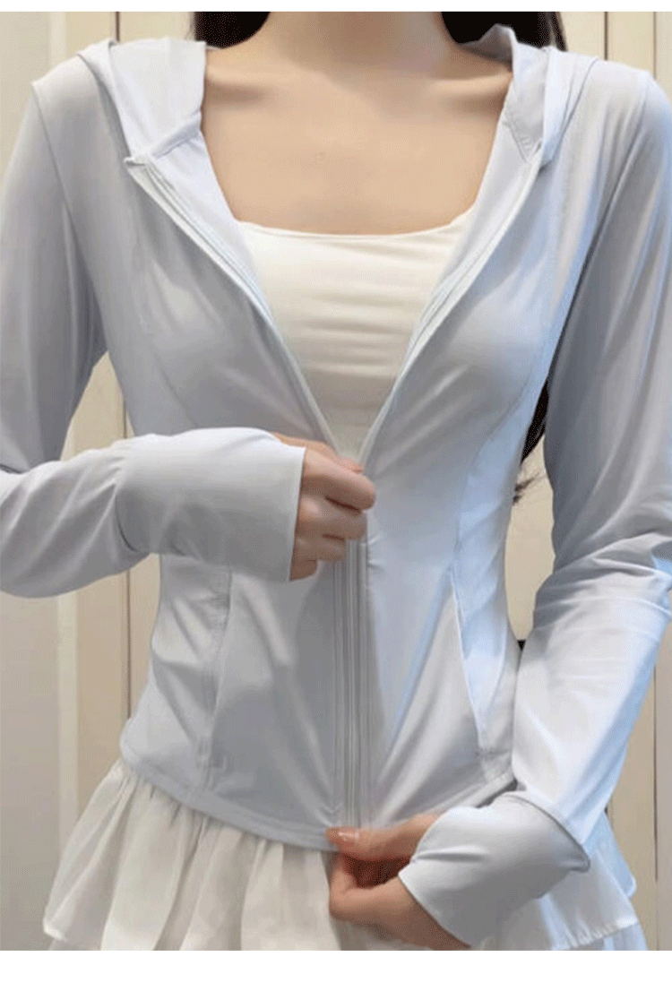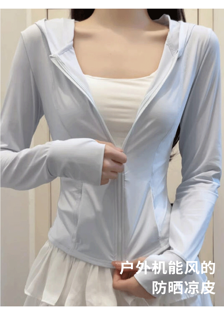 【舒适透气!弹力不紧绷】粉色冰丝防晒衣女款夏薄款户外防紫外线防晒服修身紧身短外套上衣。xa