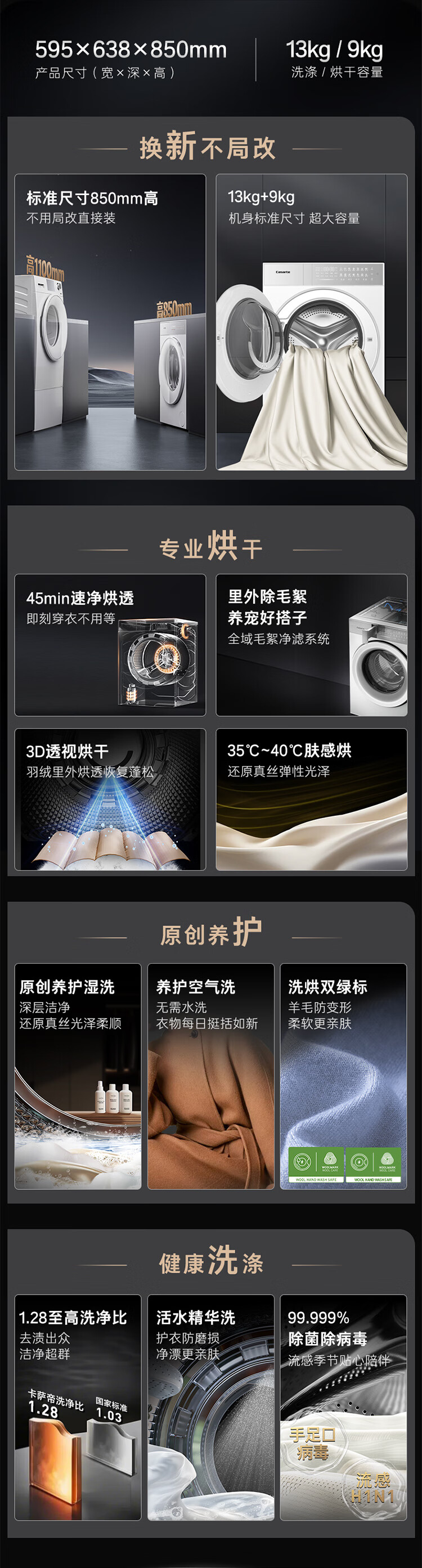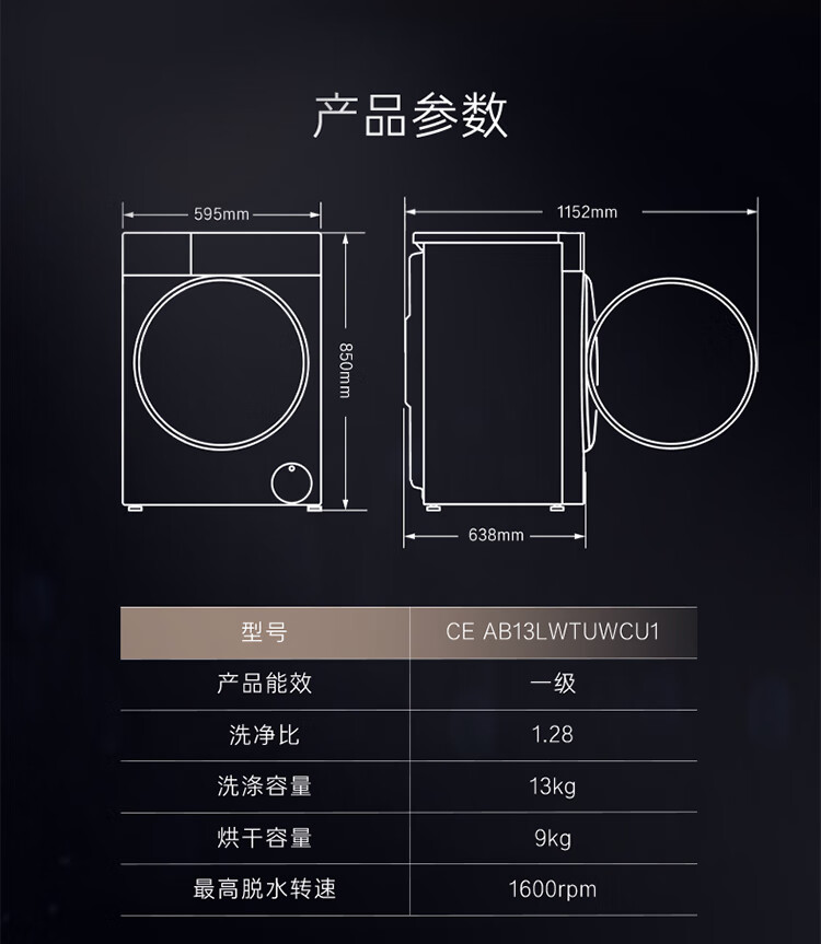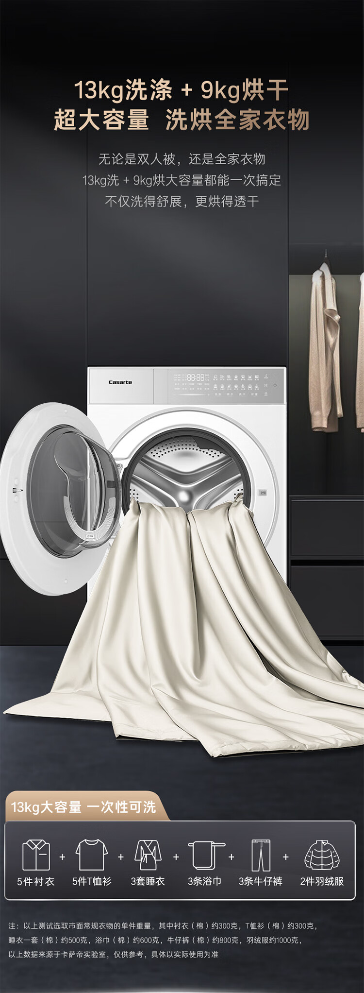 卡萨帝(Casarte)揽光W13热泵洗烘一体 滚筒懒人洗衣机全自动13公斤 双擎三变频 CE AB13LWTUWCU1 家电国家补贴