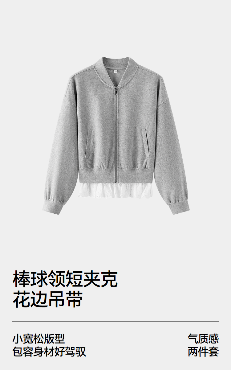 商场同款|森马外套女秋棒球领短夹克花边吊带2025新款气质两件套