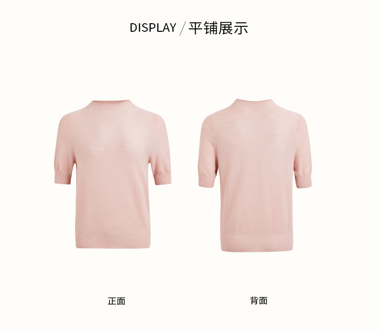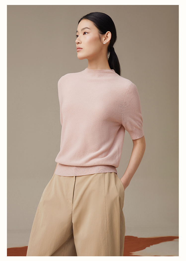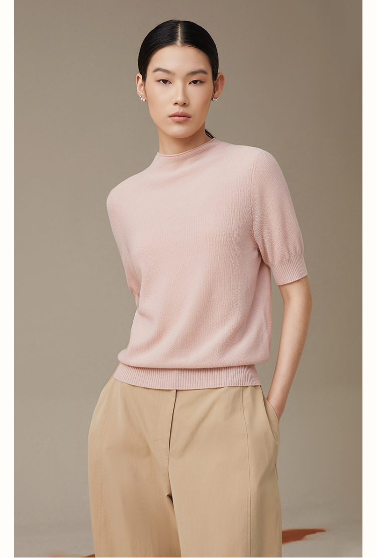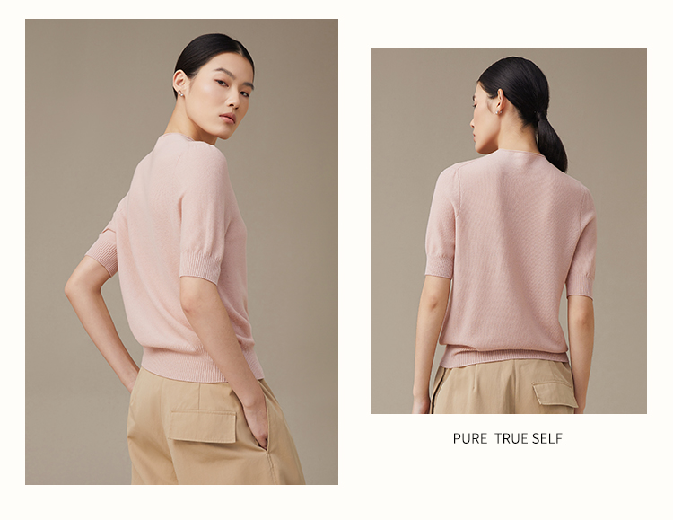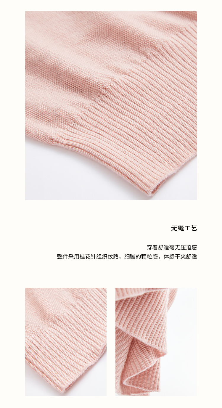 pure touch秋季100%绵羊毛女士短袖针织衫浅粉色