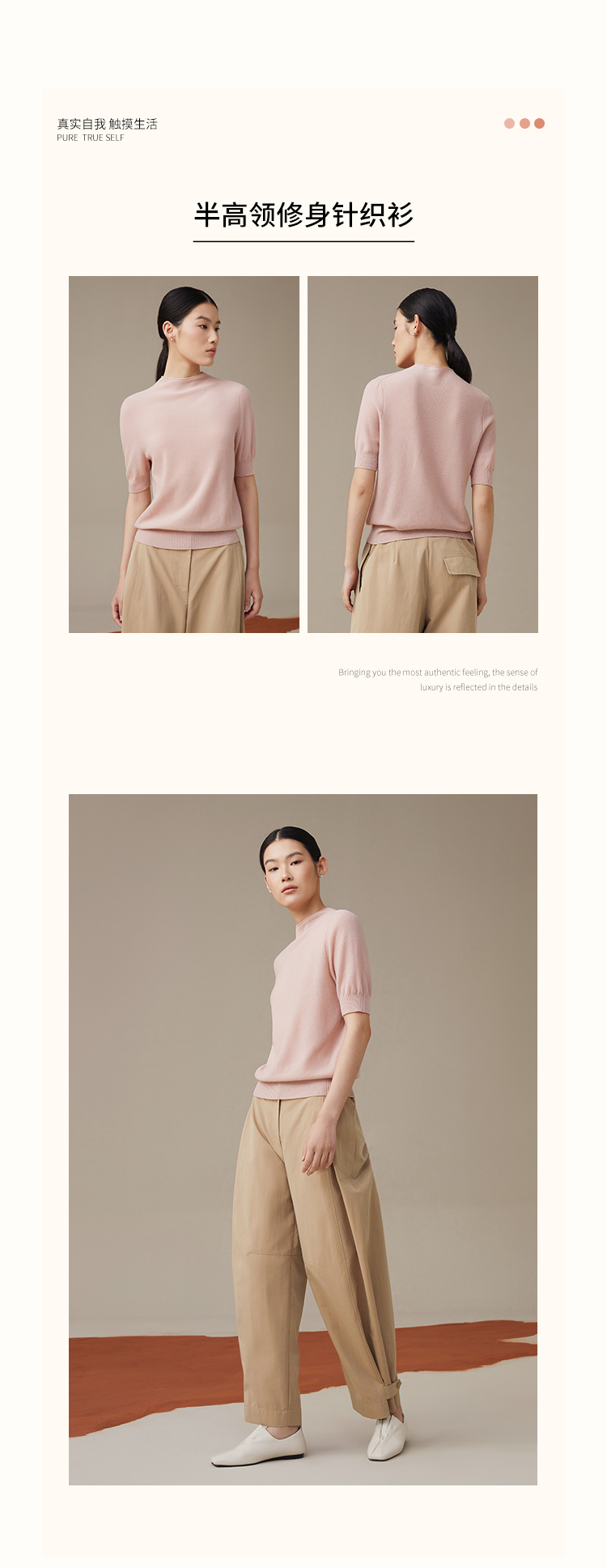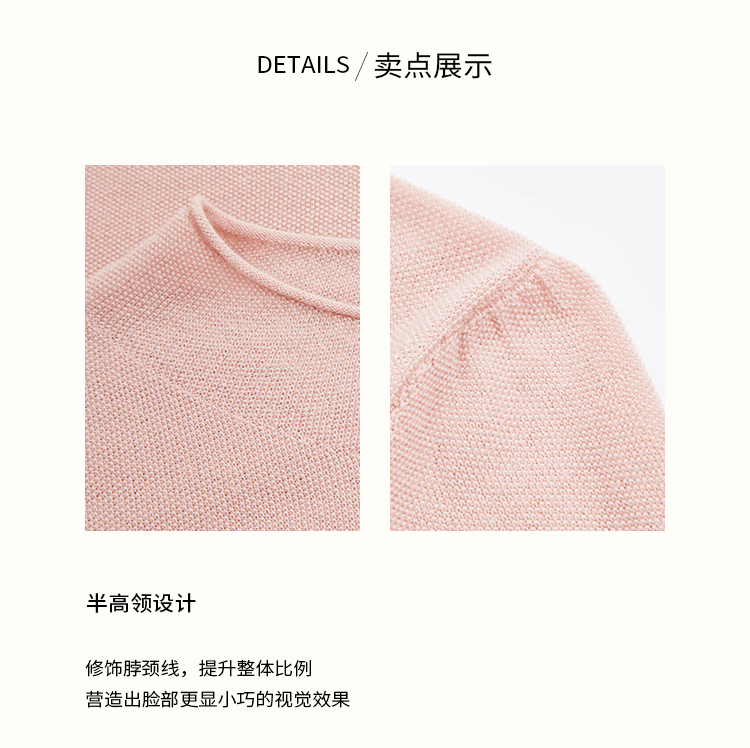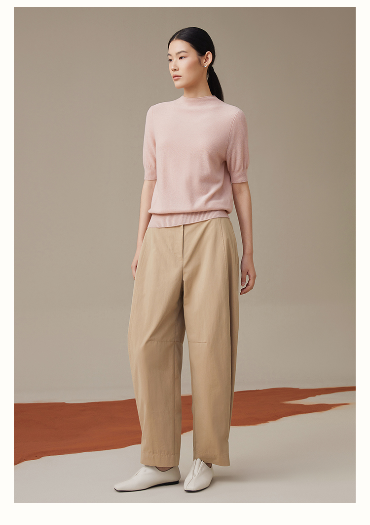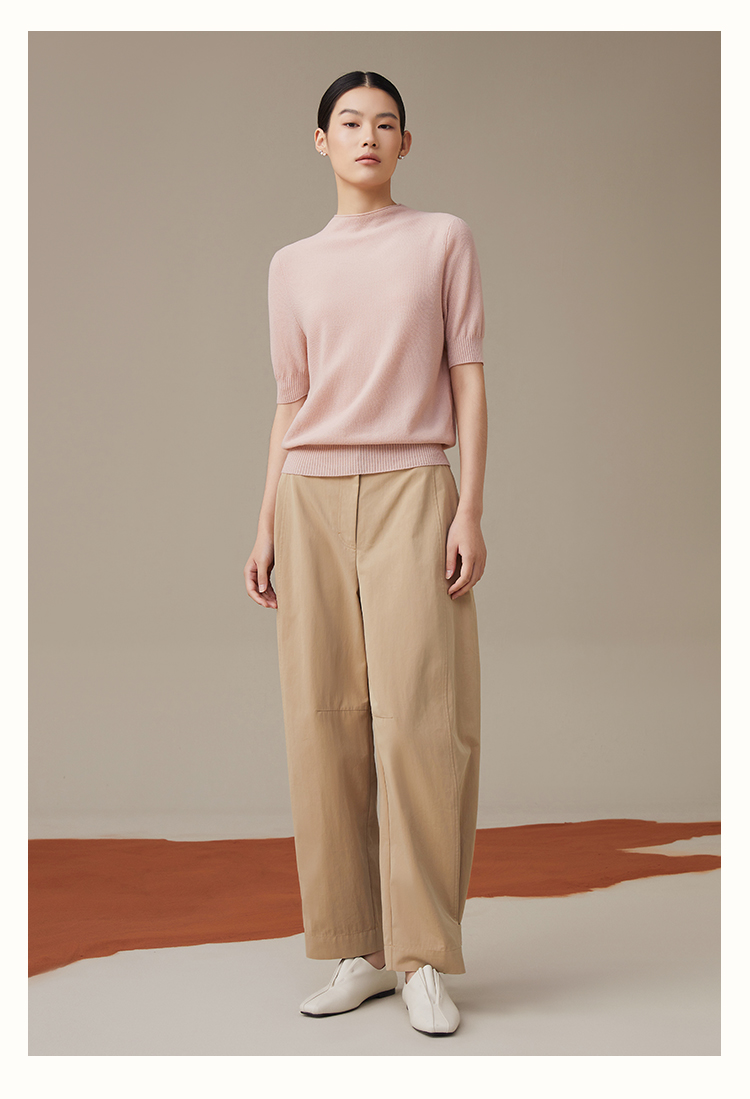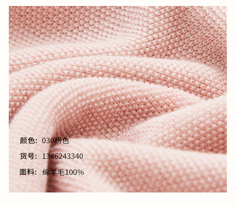 pure touch秋季100%绵羊毛女士短袖针织衫浅粉色