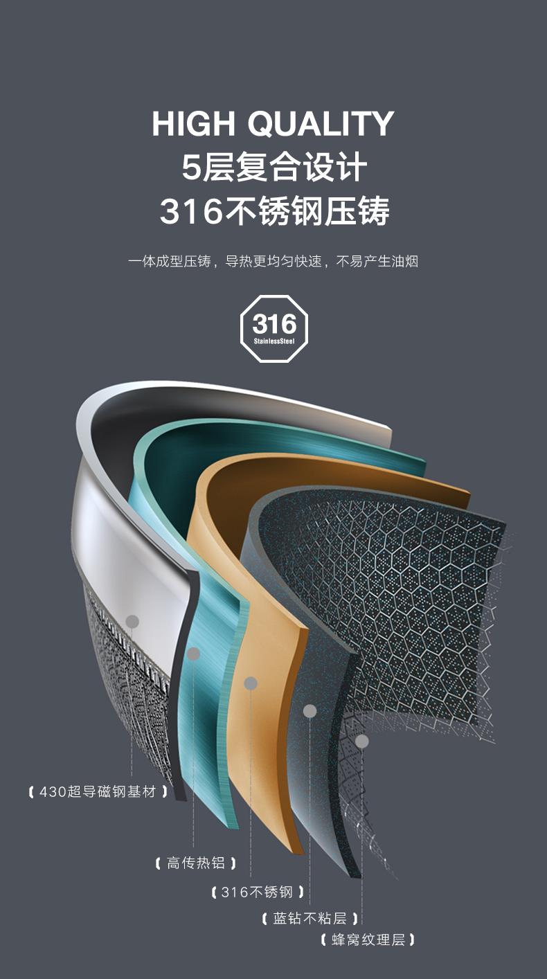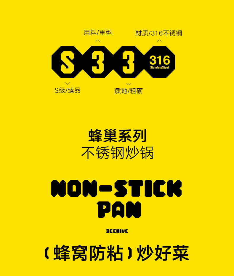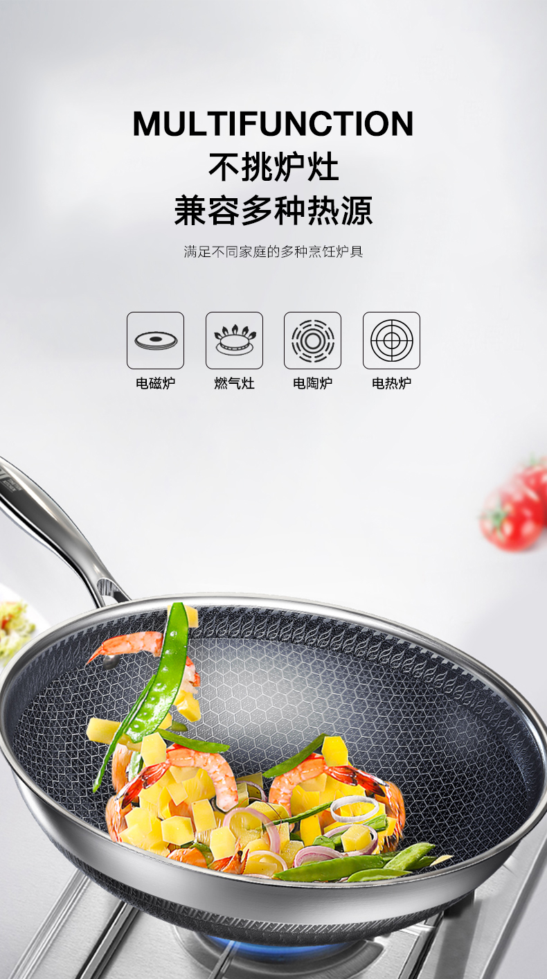 ABS爱彼此 蜂巢系列不锈钢炒锅(30cm)