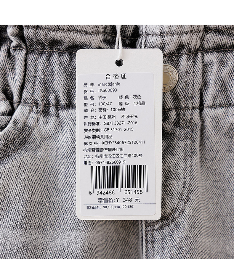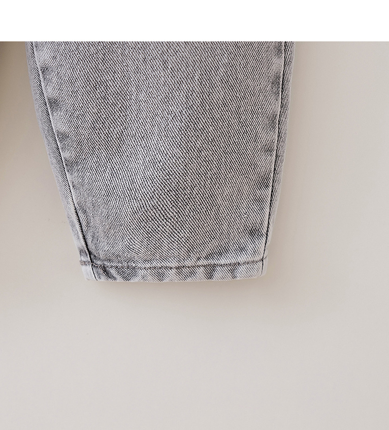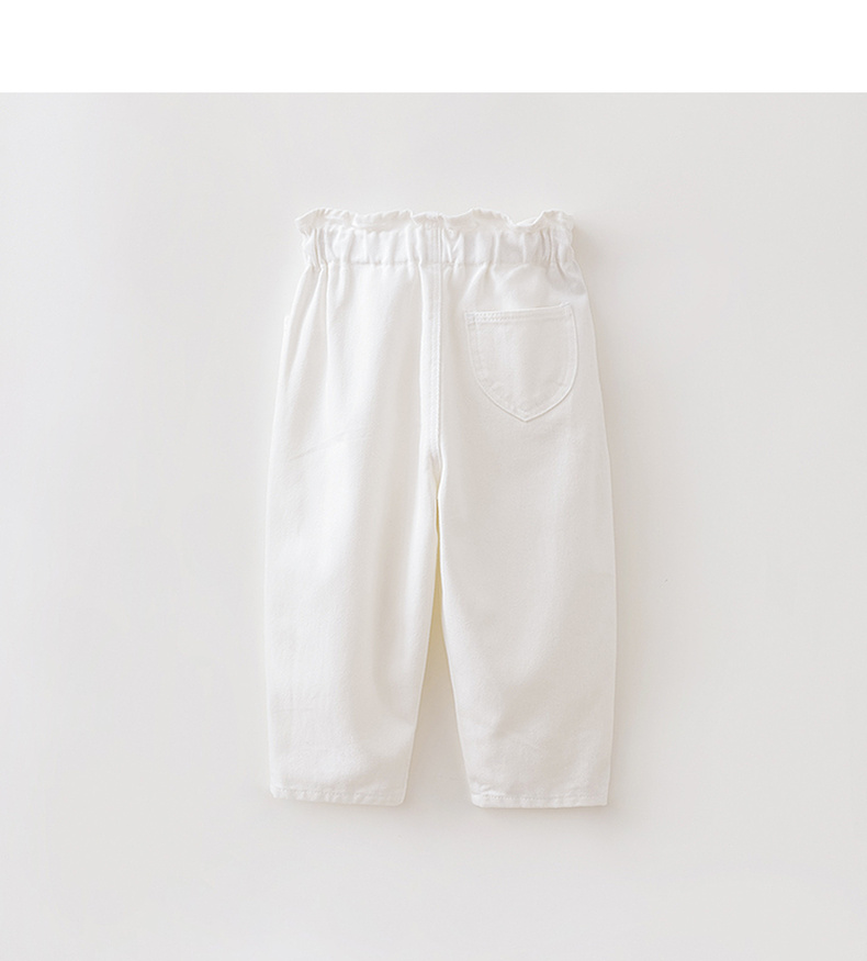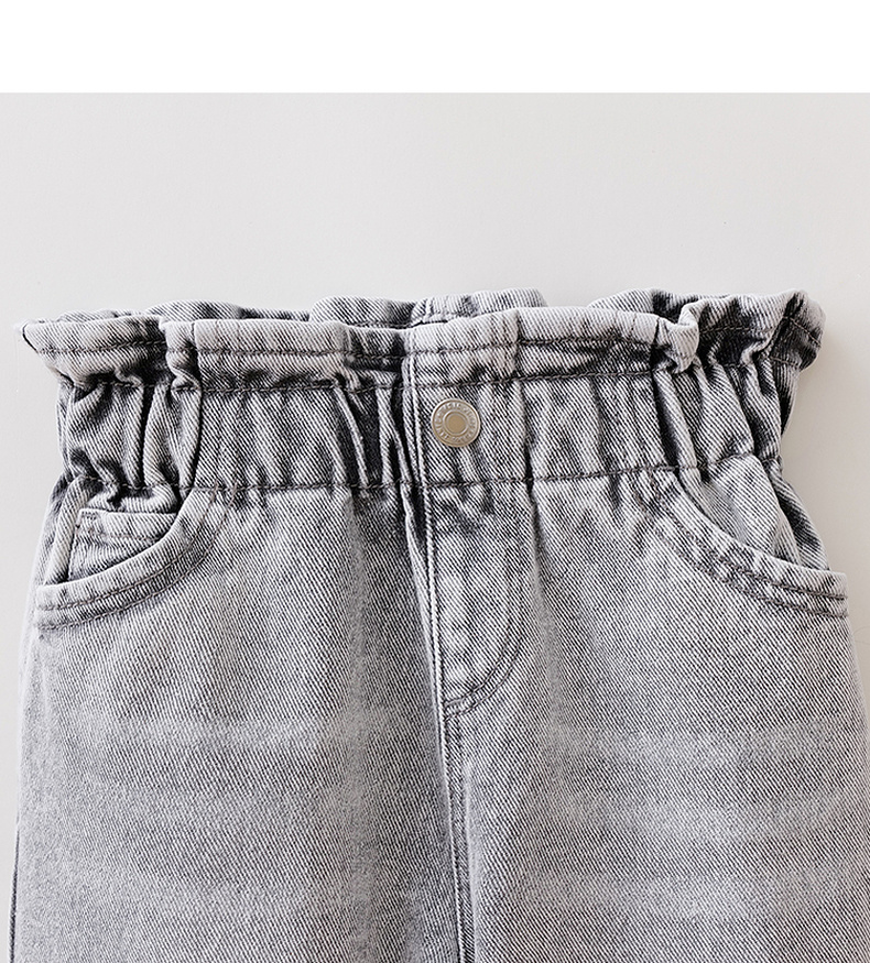 马克珍妮简约牛仔女童花边腰百搭萝卜裤 宝宝裤子春装新款560093