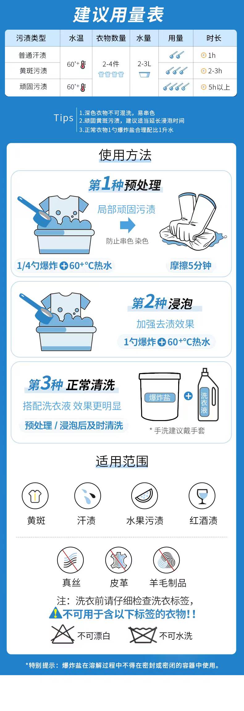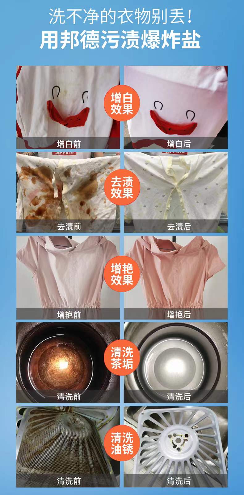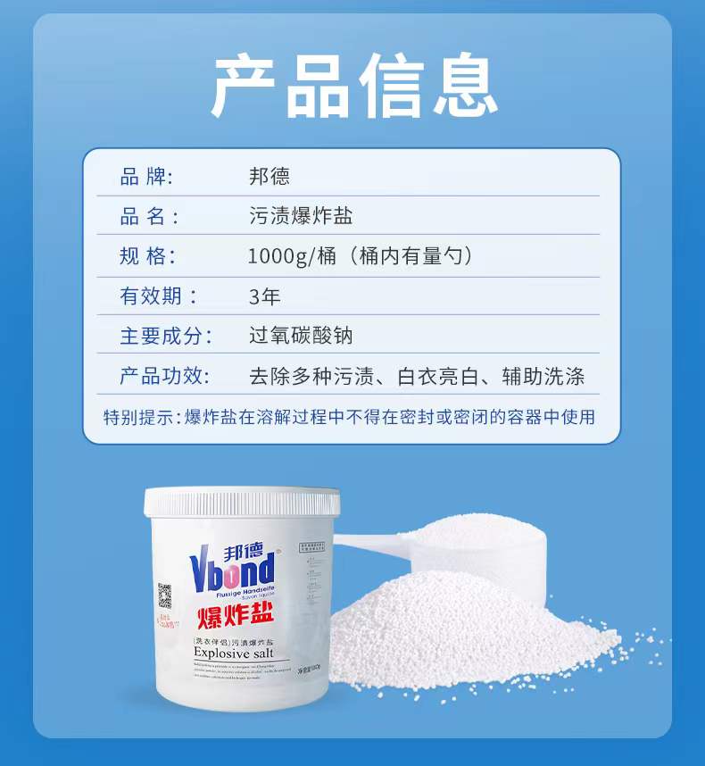 【安全无残留 杀菌率99.99%】 邦德爆炸盐二代 德国技术配方 母婴可用 轻松分解污渍1000g【F】