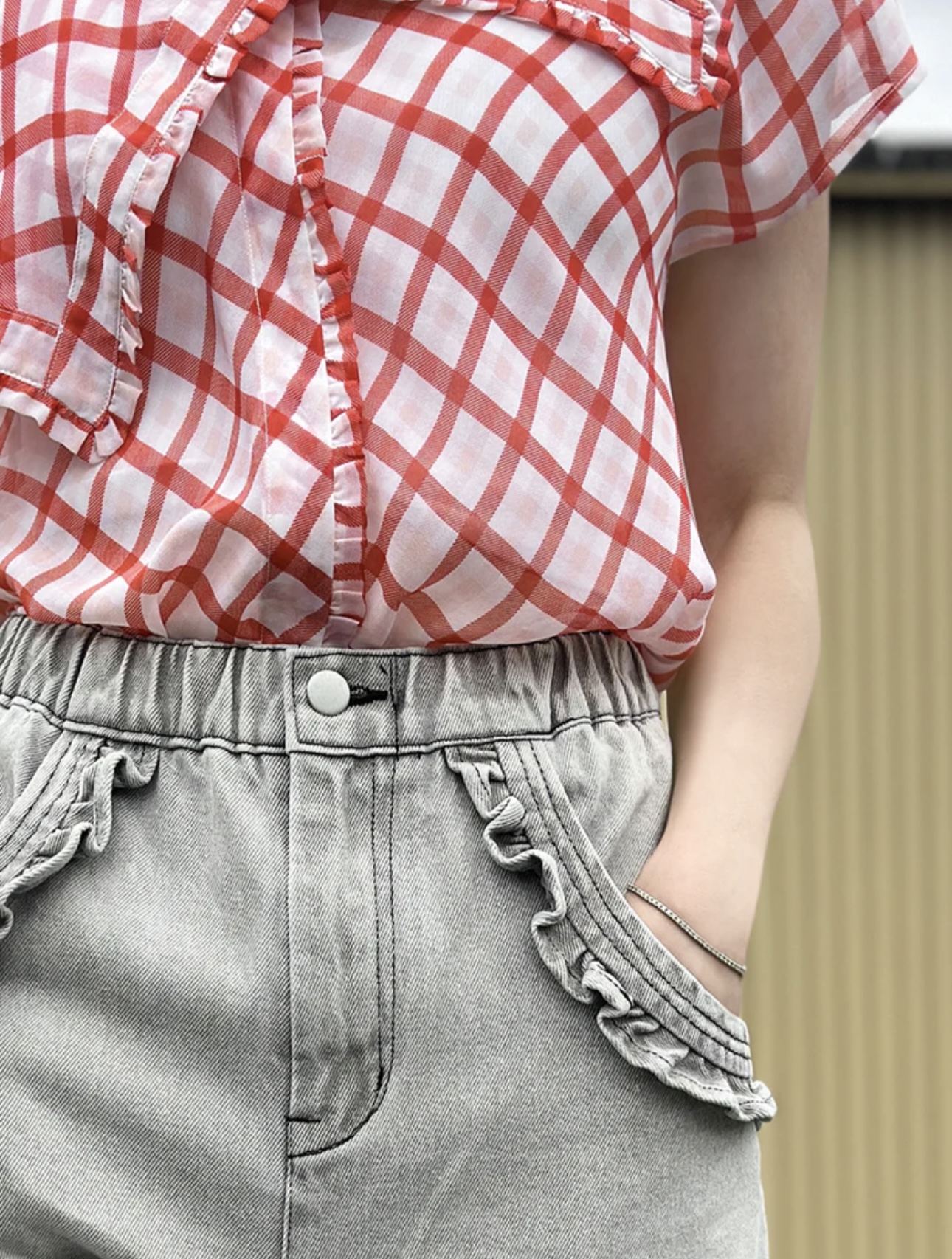 OUTOFLAW 翻裤脚嵌绳工艺廓形牛仔裤