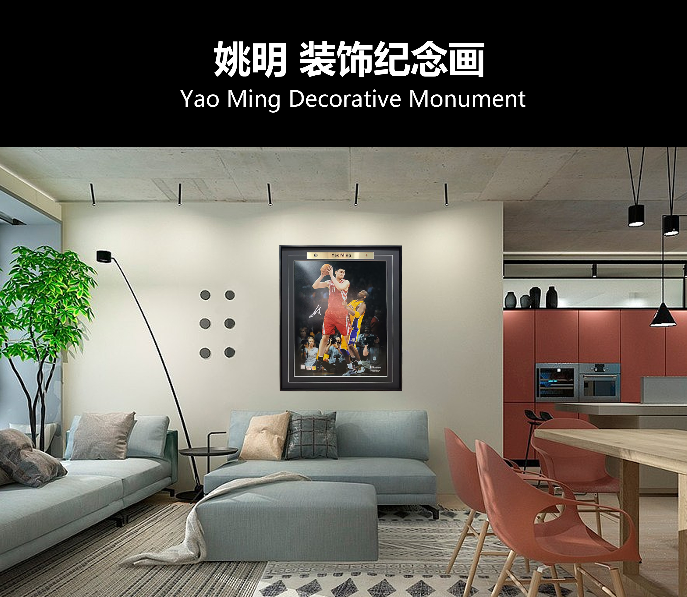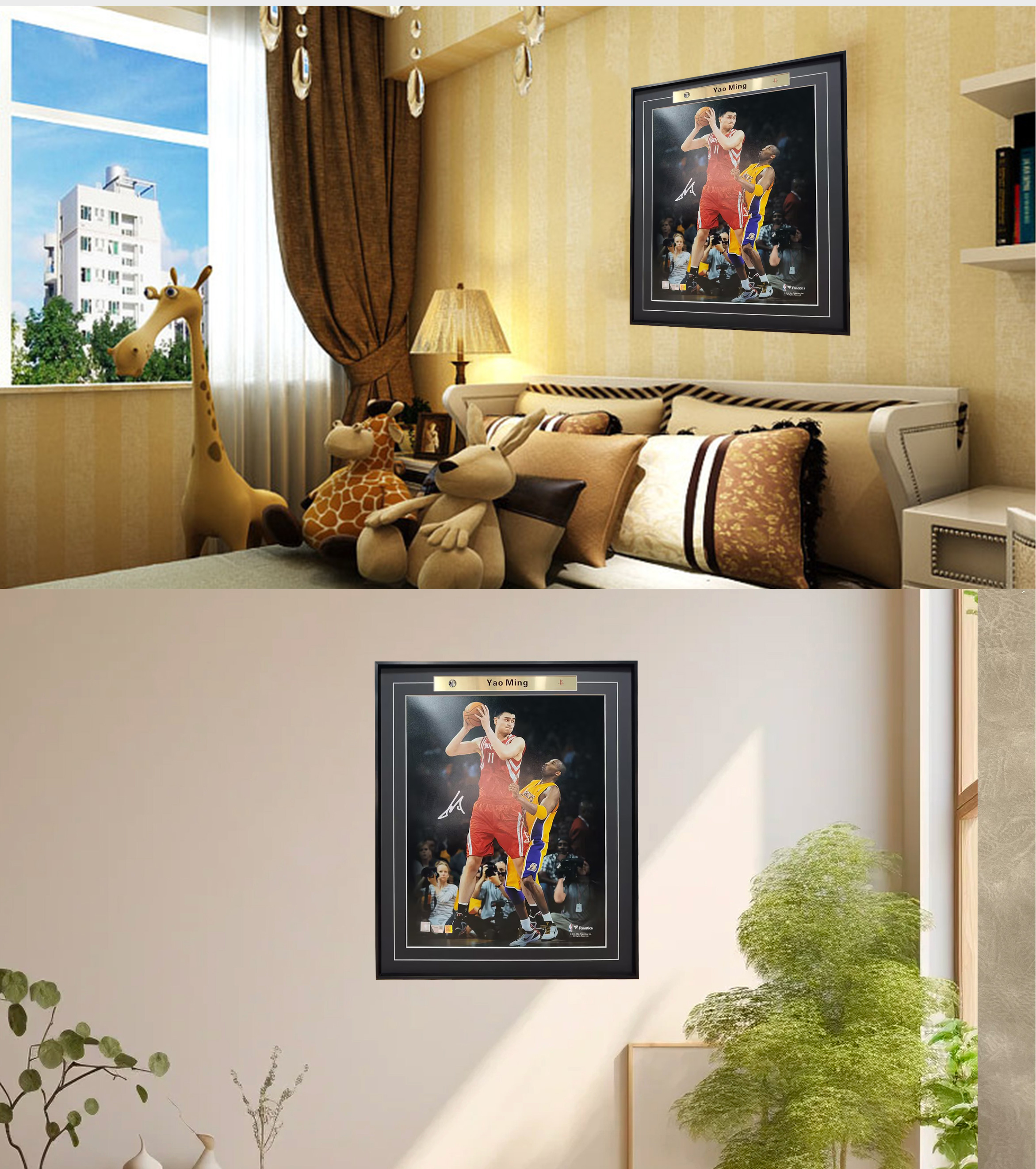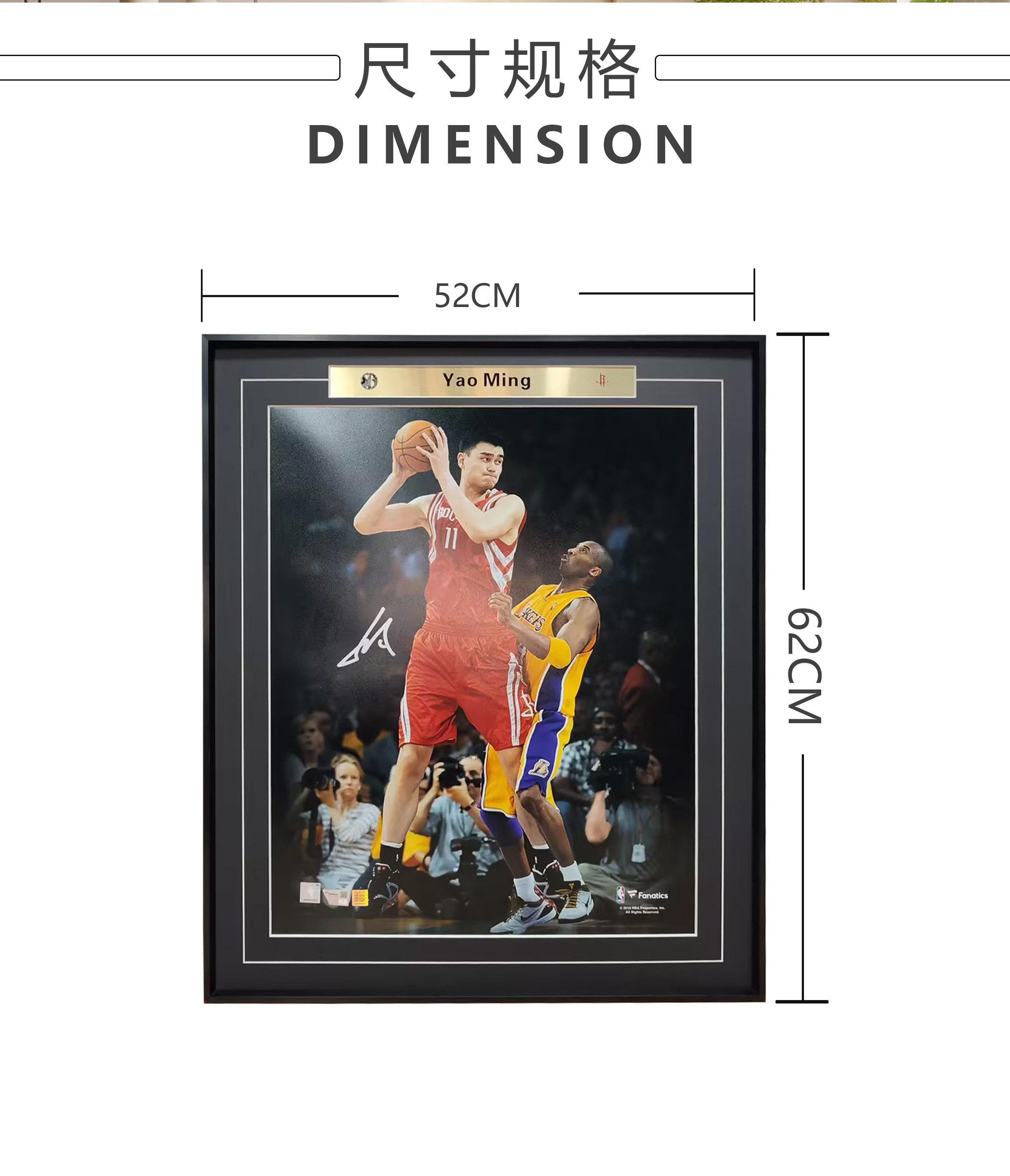 收藏系列 姚明对位科比 亲笔签名装饰画