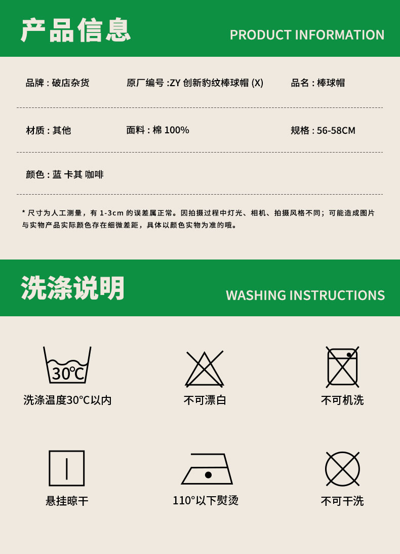 时尚牛仔刺绣ZY创新豹纹棒球帽-纪念日百货门店同款169293398