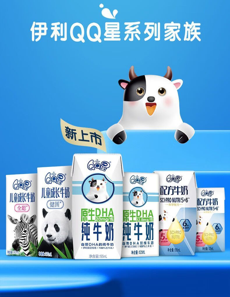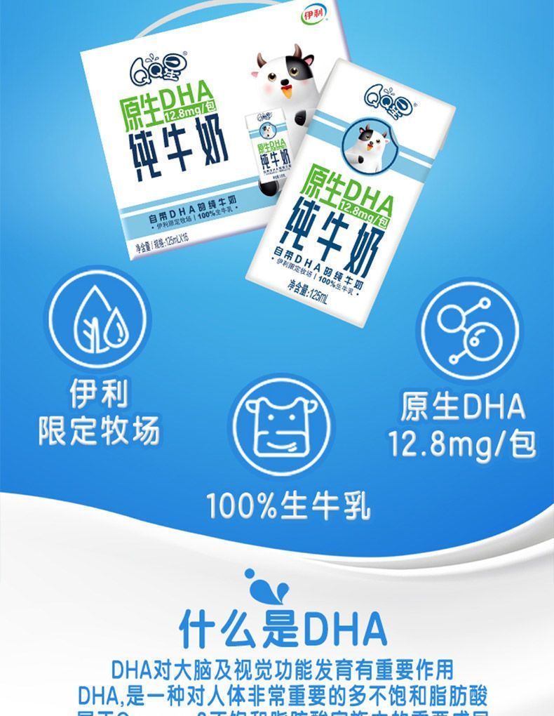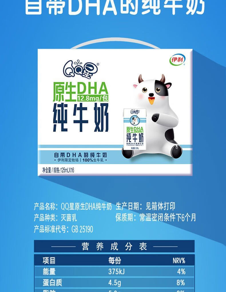 伊利QQ星原生DHA纯牛奶125ml*16盒