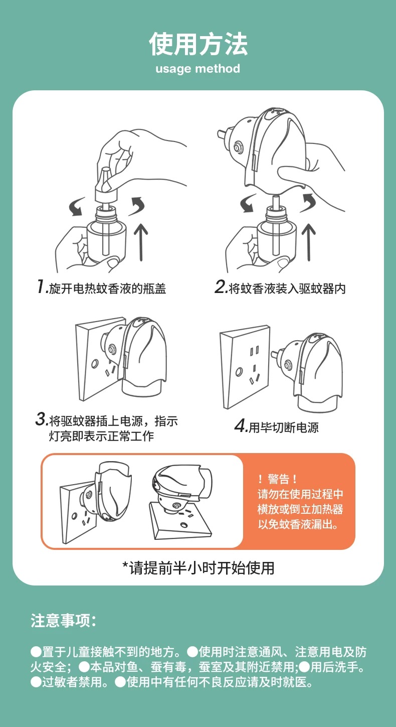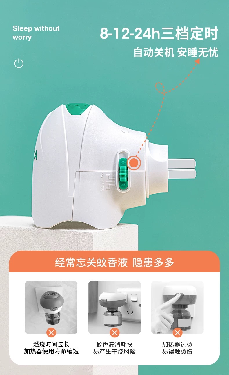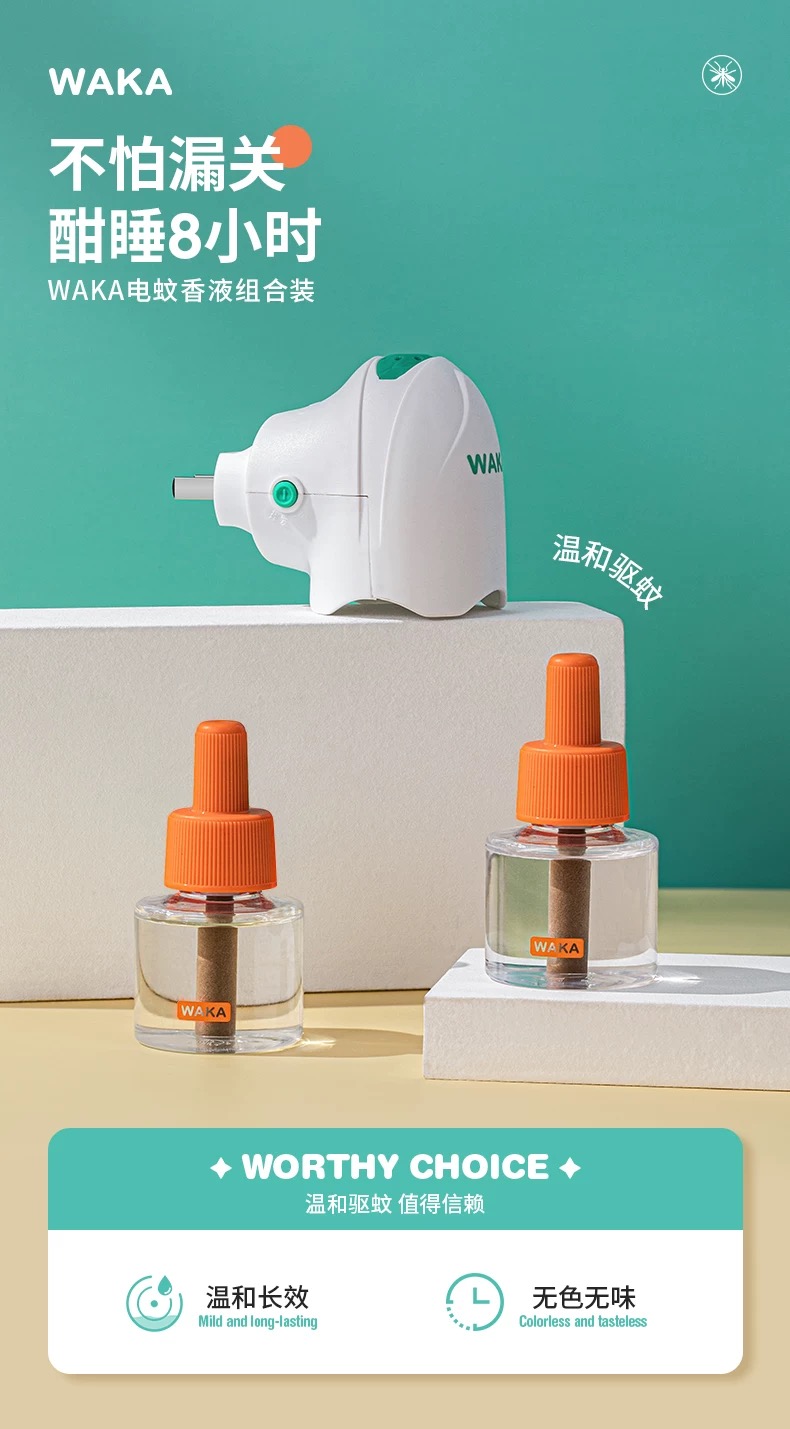 WAKA电热蚊香液无味家用驱蚊无烟居家防蚊虫叮咬三档定时开关