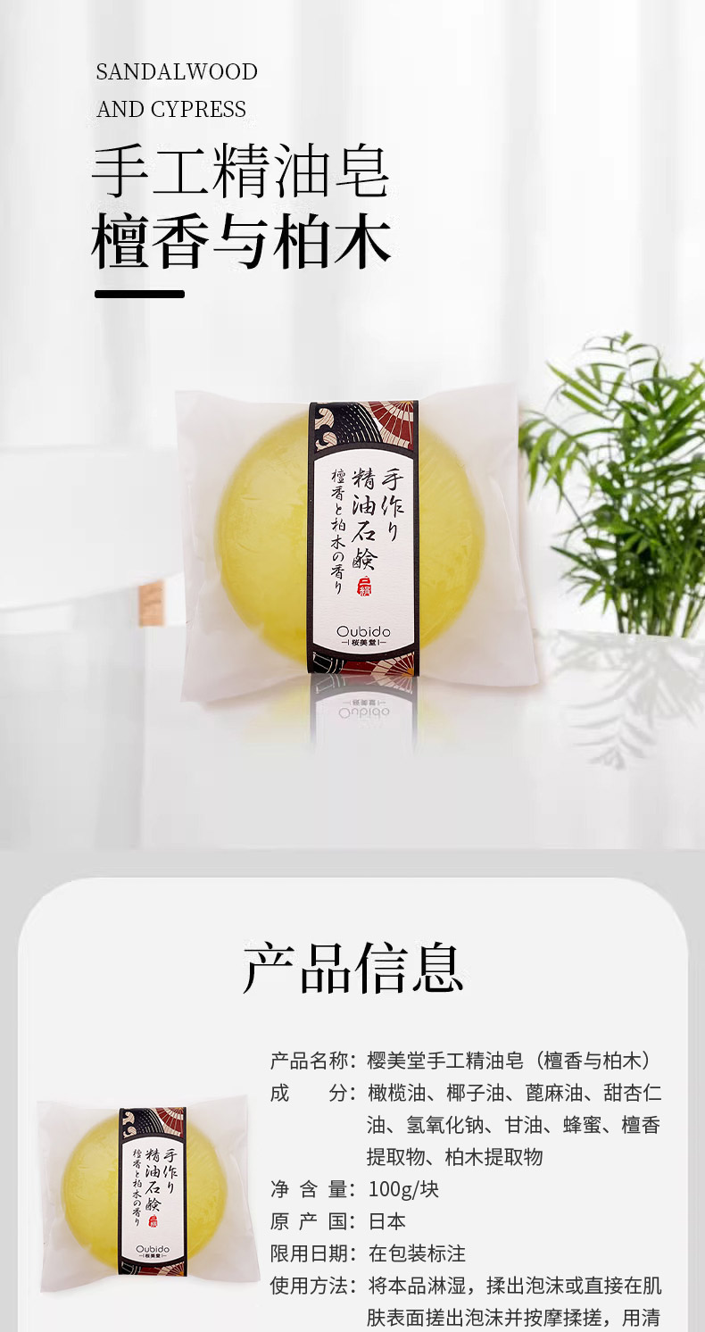 日本进口樱美堂手工精油皂(檀香与柏木)100g
