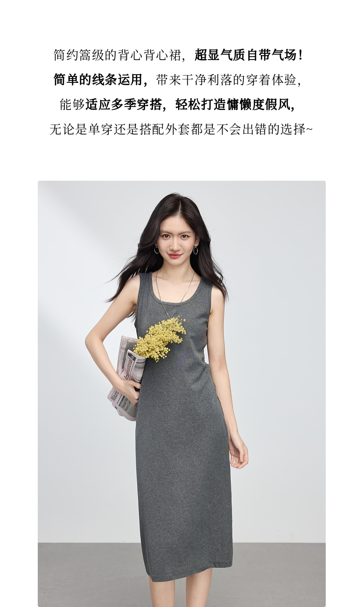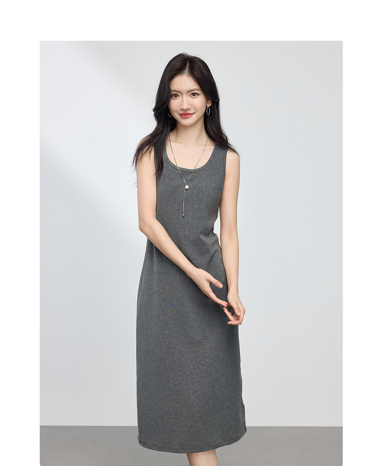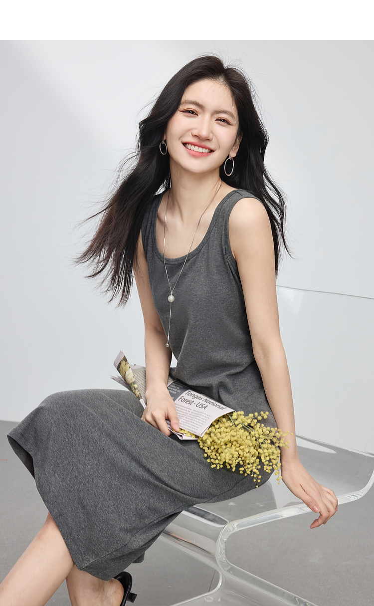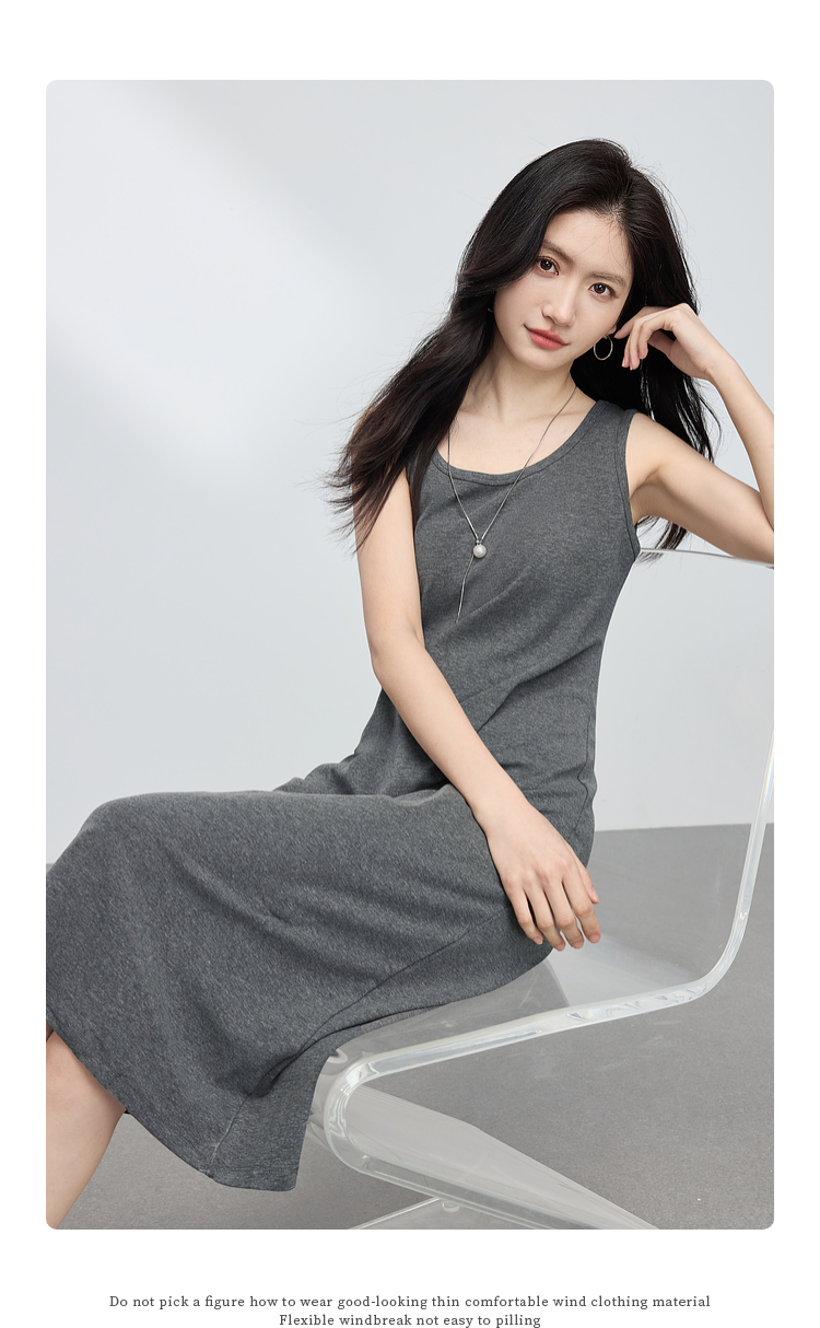 【专属特价】熙世界灰色吊带背心连衣裙女2025春夏季新款无袖内搭打底针织长裙