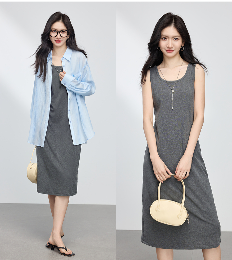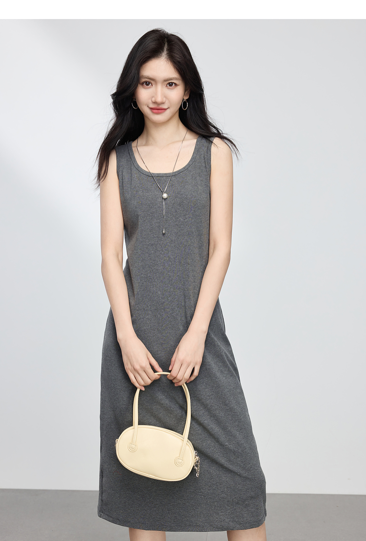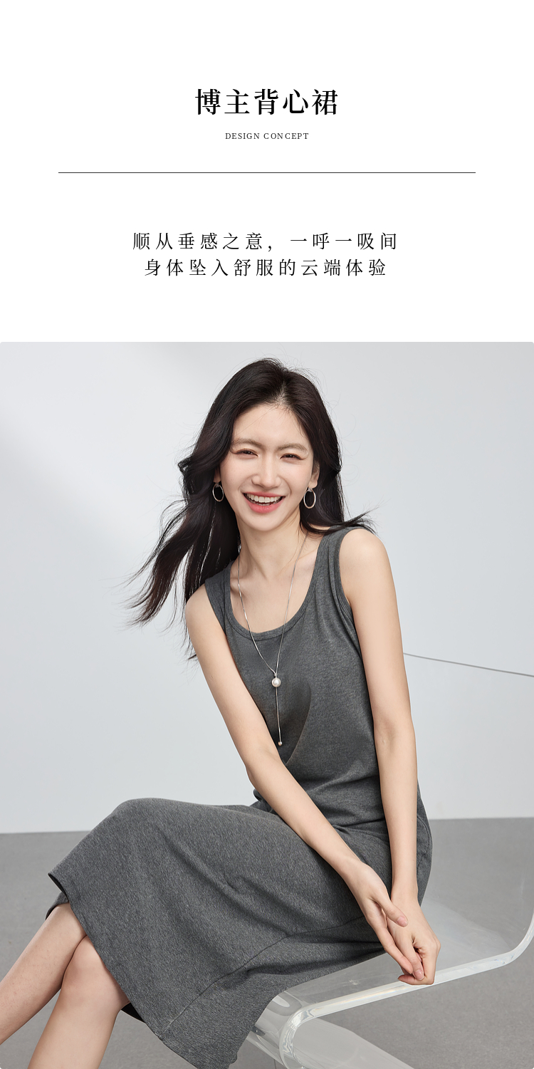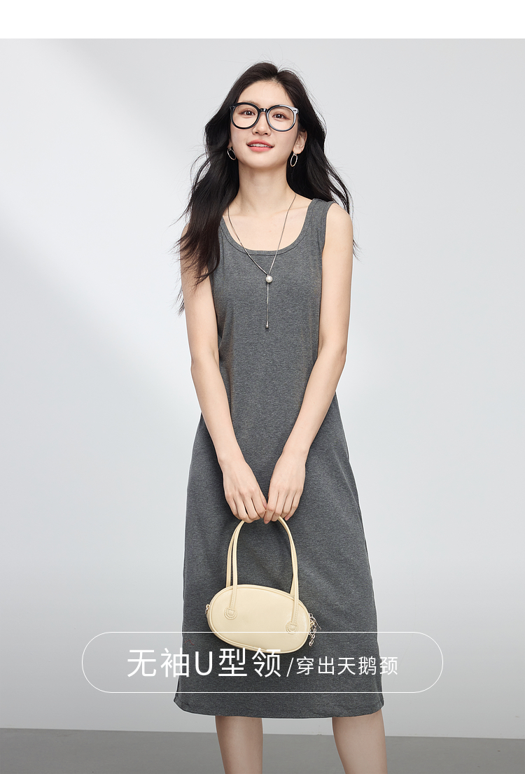 【专属特价】熙世界灰色吊带背心连衣裙女2025春夏季新款无袖内搭打底针织长裙