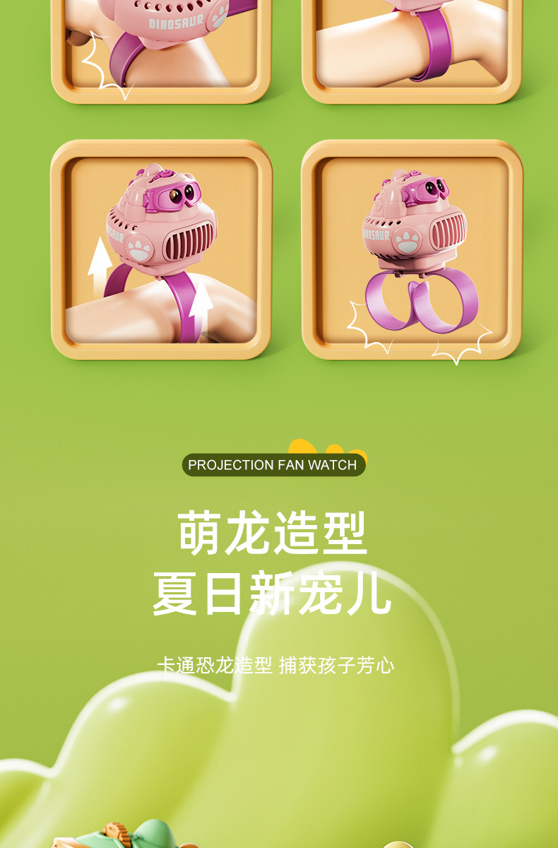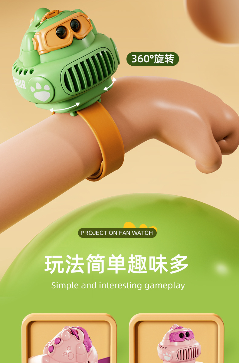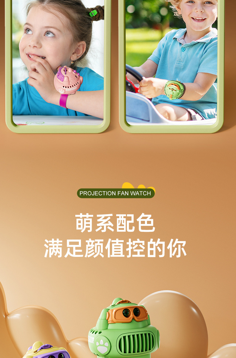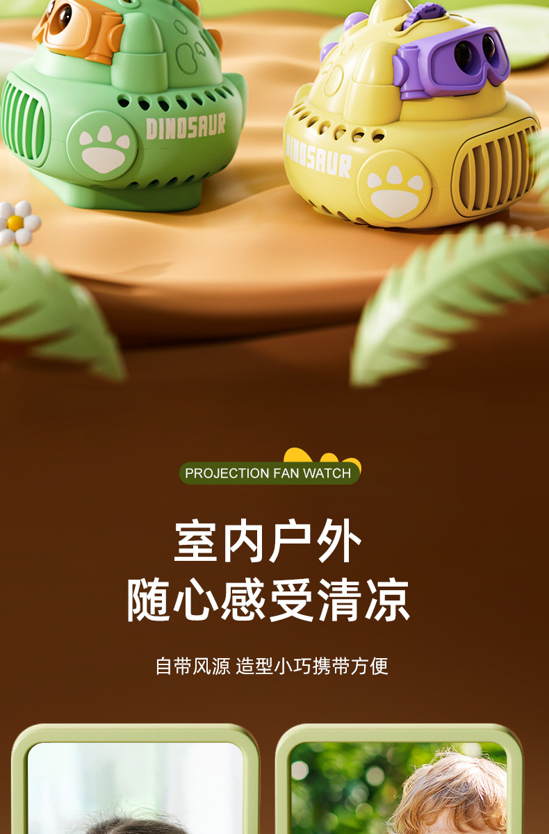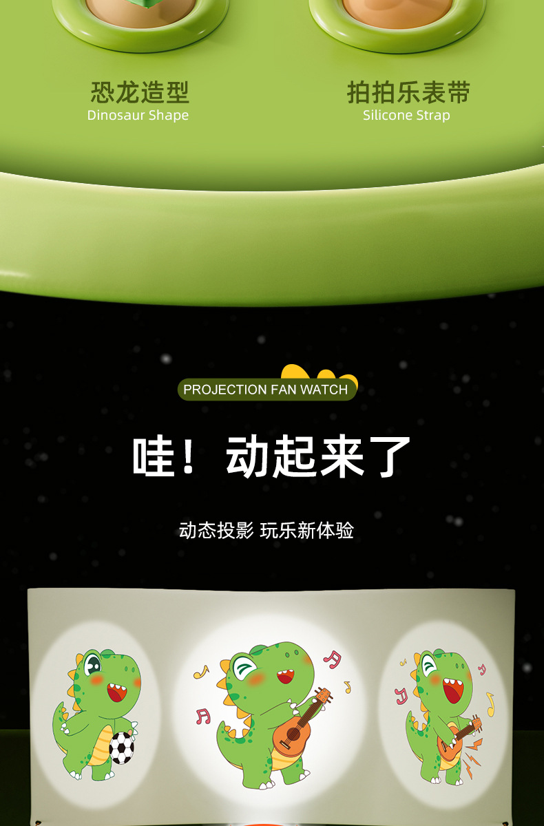 【恐龙动态投影风扇】卡通恐龙手表风扇 投影USB充电 迷你无叶手腕风扇 学生礼物玩具