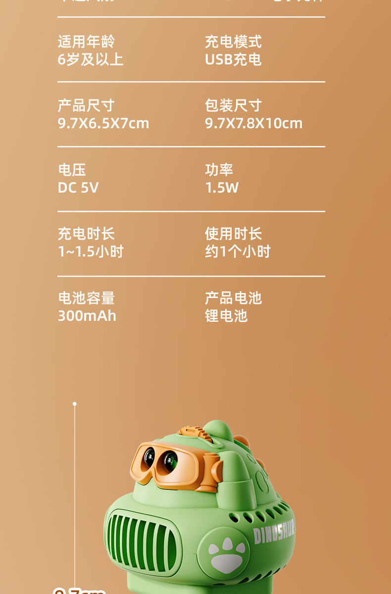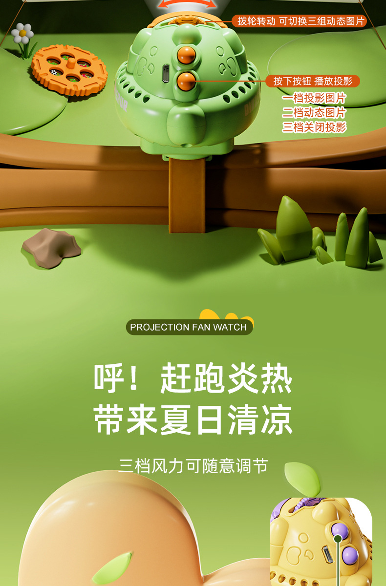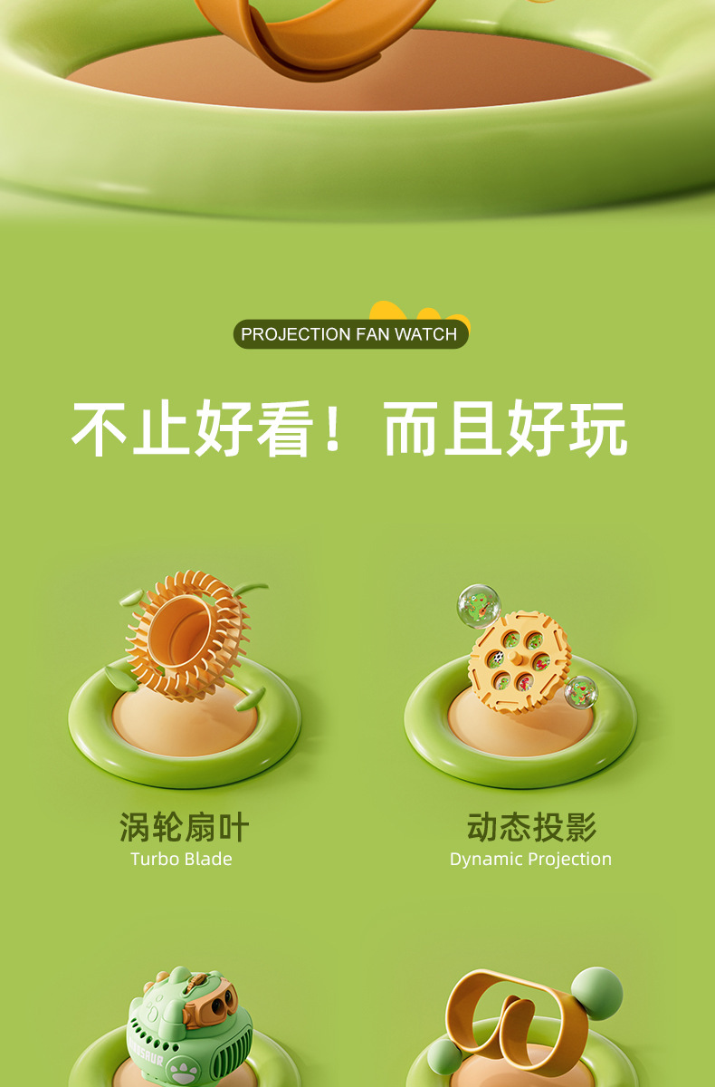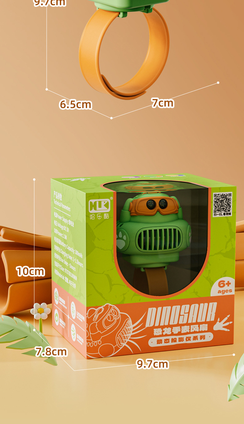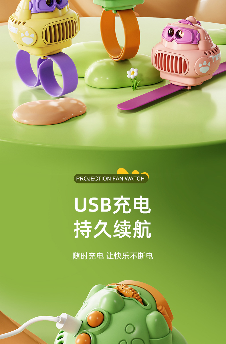 【恐龙动态投影风扇】卡通恐龙手表风扇 投影USB充电 迷你无叶手腕风扇 学生礼物玩具