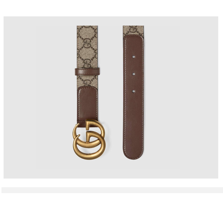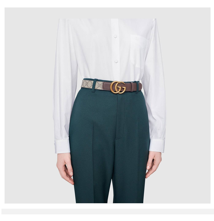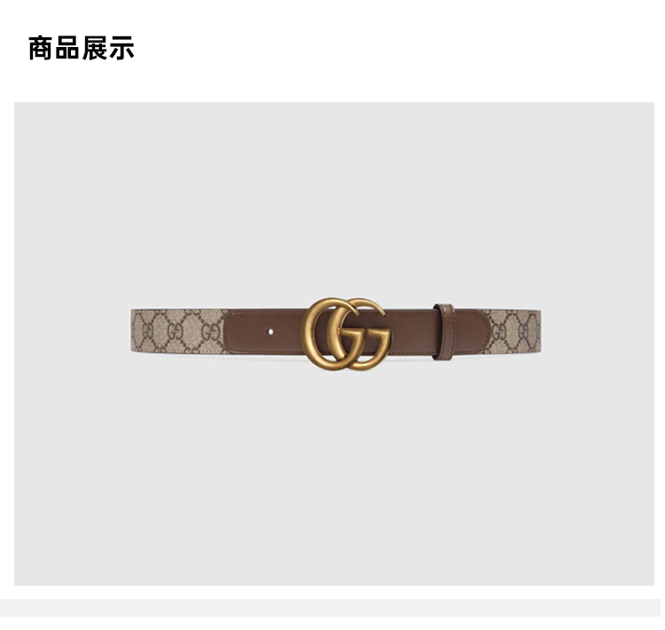 GUCCI 古驰 女士双 G 搭扣 GG 皮革腰带 棕色 625839 92TLT 8358