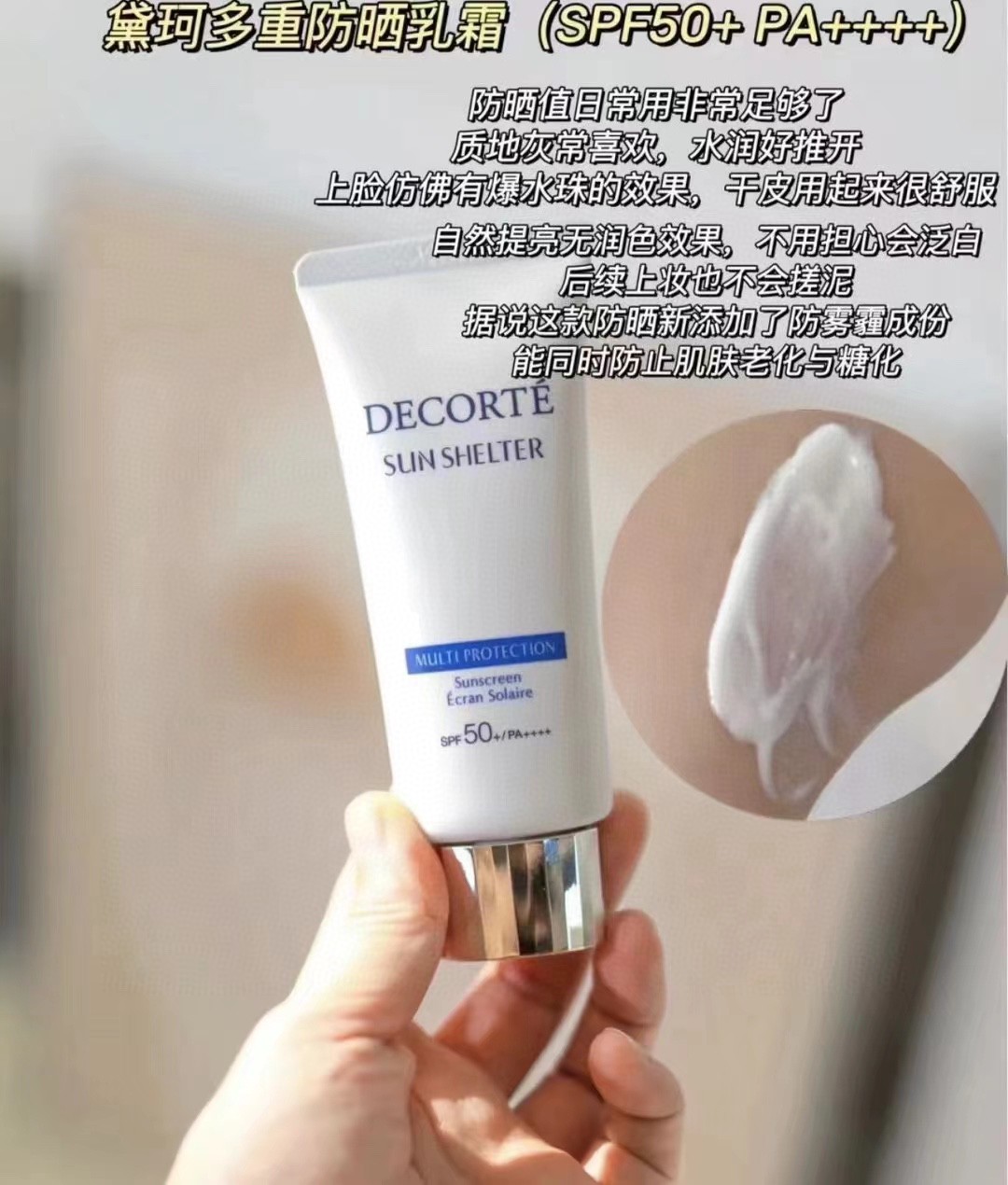 黛珂防晒新版60ml 物化结合防晒通过无数防晒实验有效防晒持续6小时以上无需卸妆直接洗面奶可以轻松洗净无残留孕妇敏感肌均可使用