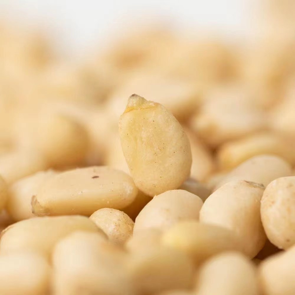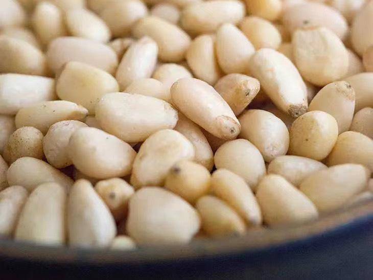 雪松子仁,颗粒大小均匀、白、甜。相比其他品种的松仁,雪松子仁不油腻,甜味突出,价格适中,最受客户喜爱。