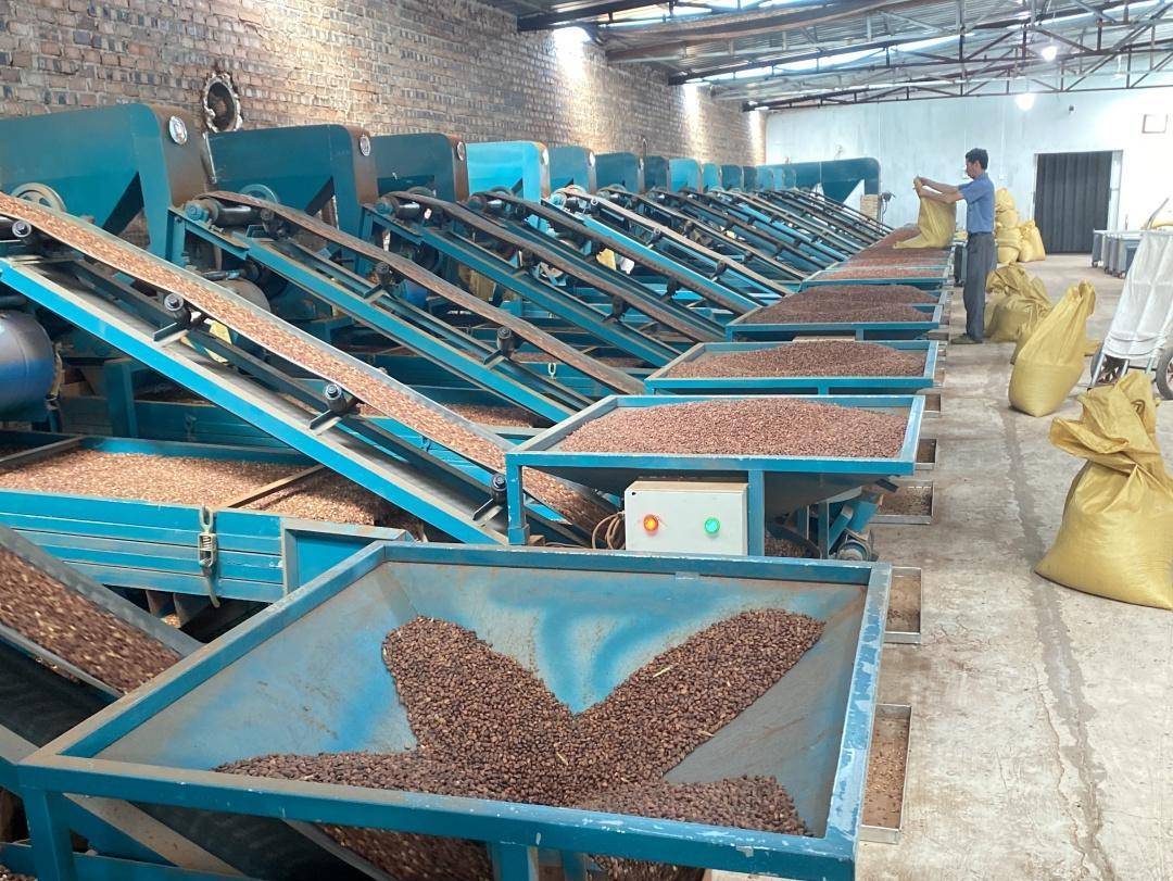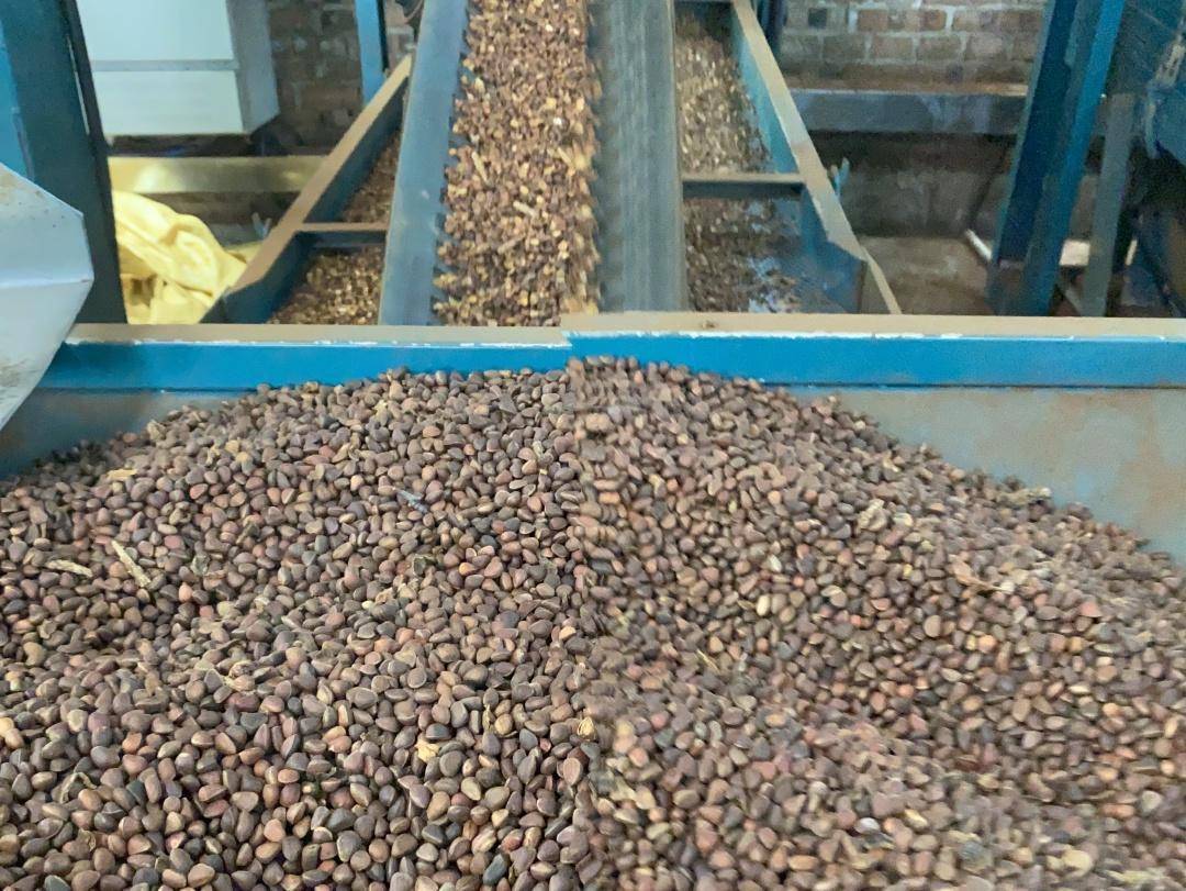 下山的松果,经过脱塔机,成功得到带壳的的松子。