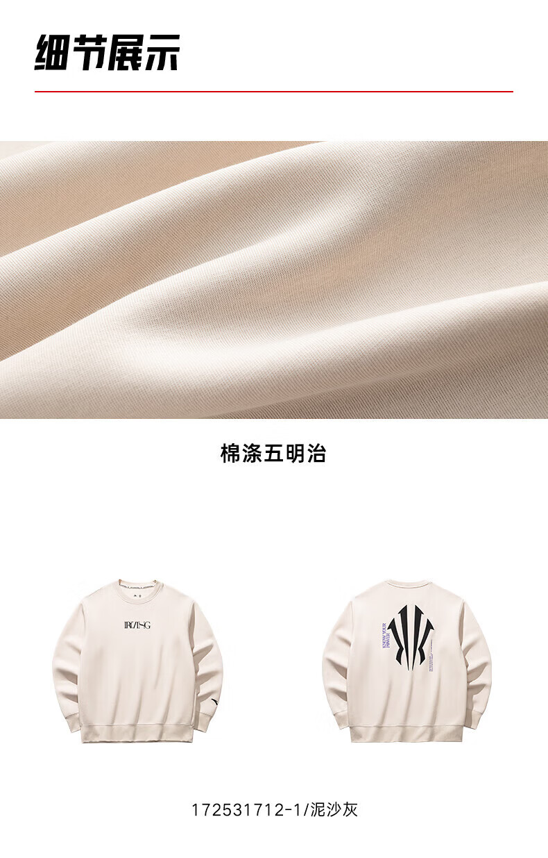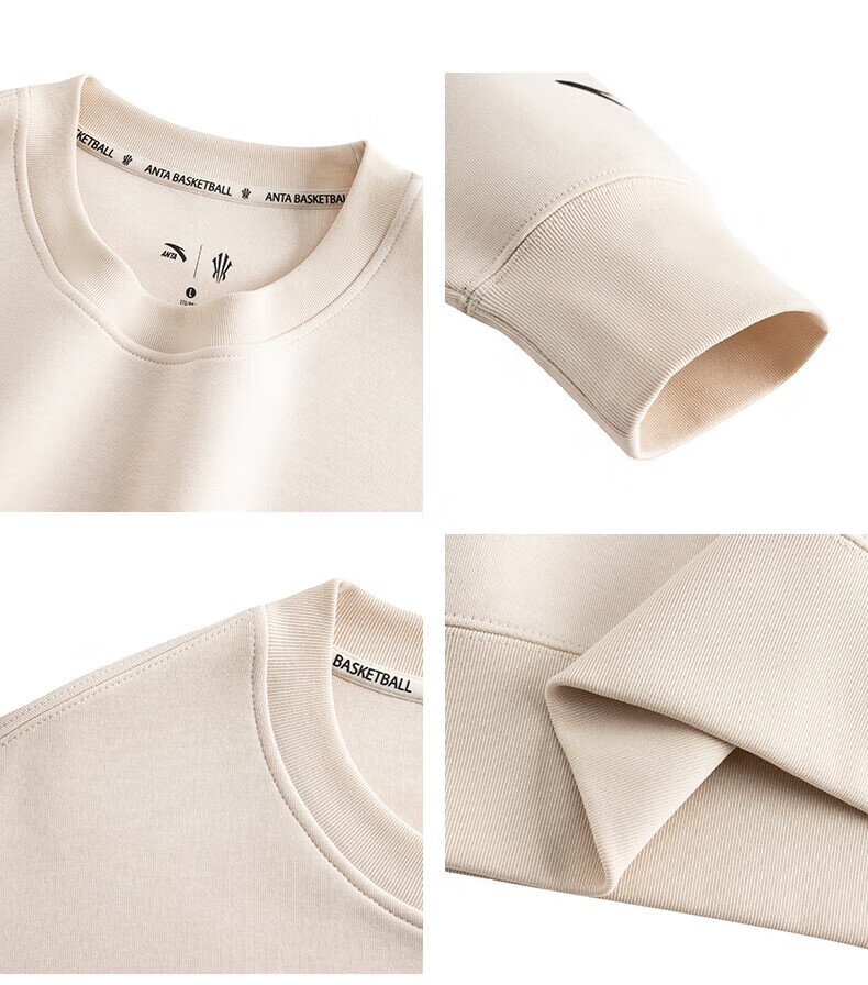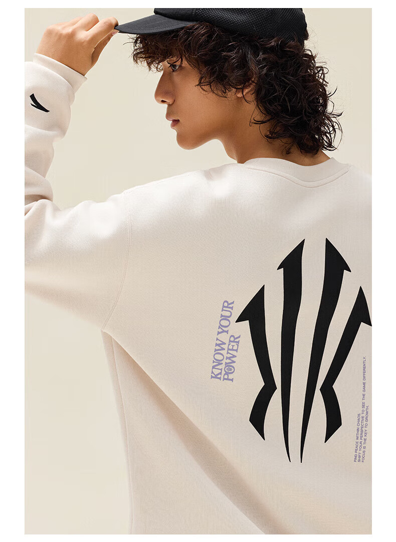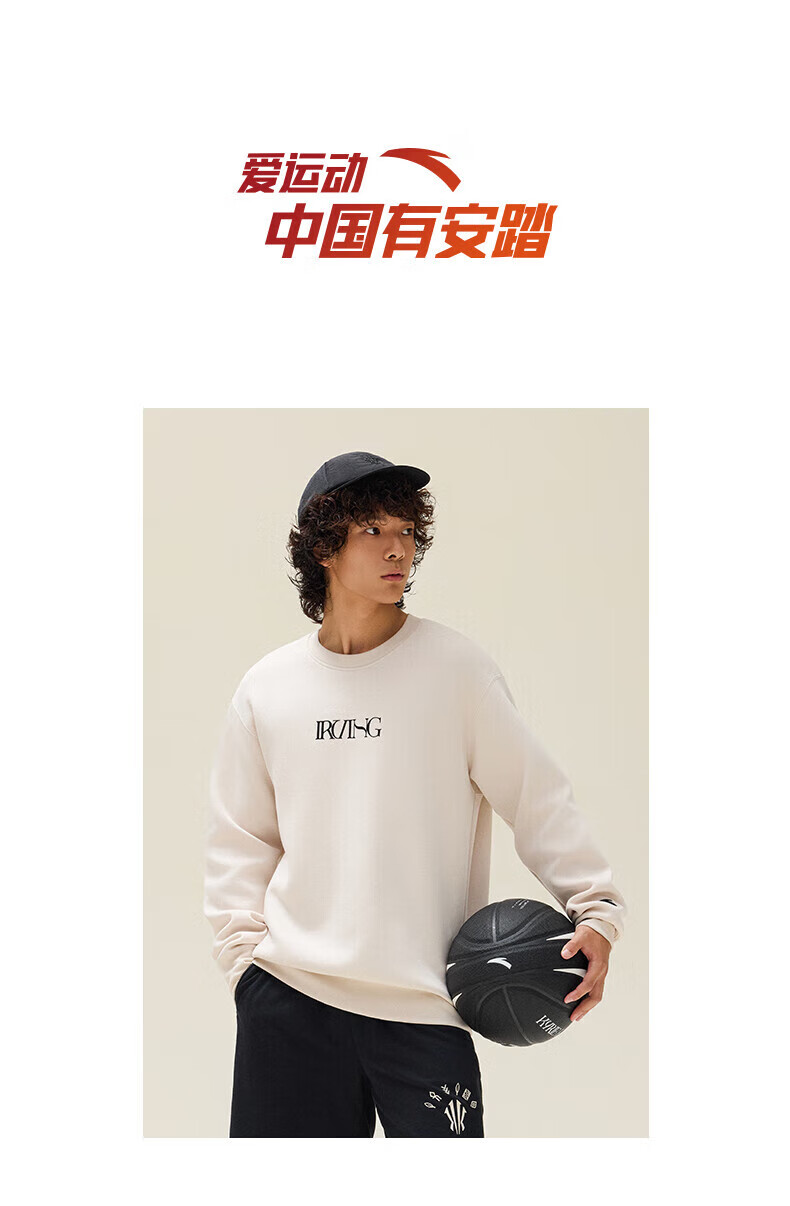 安踏(ANTA)凯里·欧文系列丨卫衣男女圆领背面字母印花落肩套头衫172531712 泥沙灰-1
