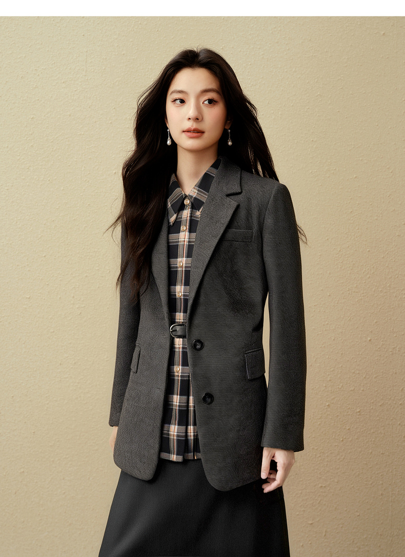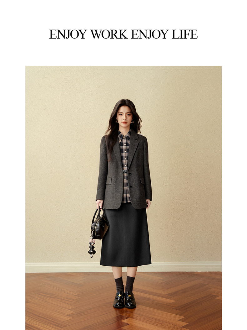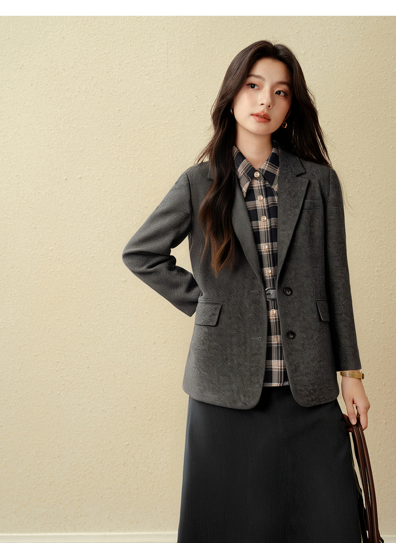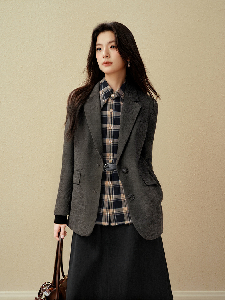 【商场同款】诗凡黎复古格纹衬衫2025秋新款棉感学院风3G9121281