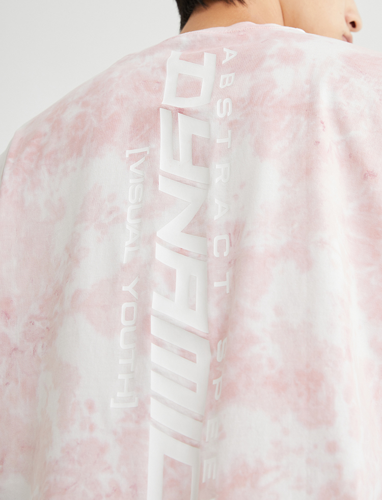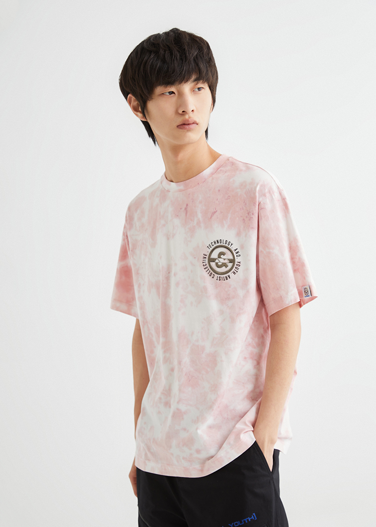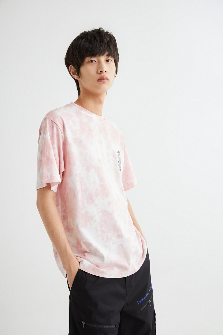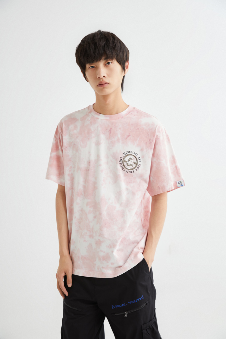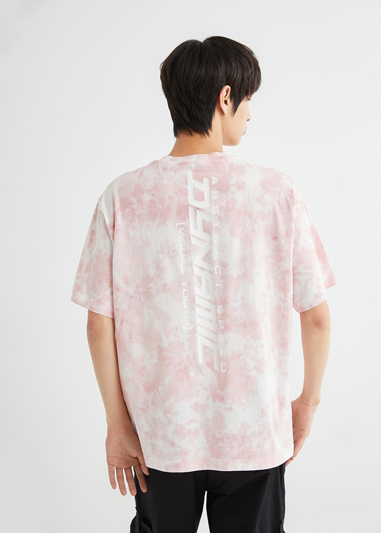 JackJones杰克琼斯夏休闲个性扎染字母印花纯棉宽松短袖T恤男士221301114 C16粉红色