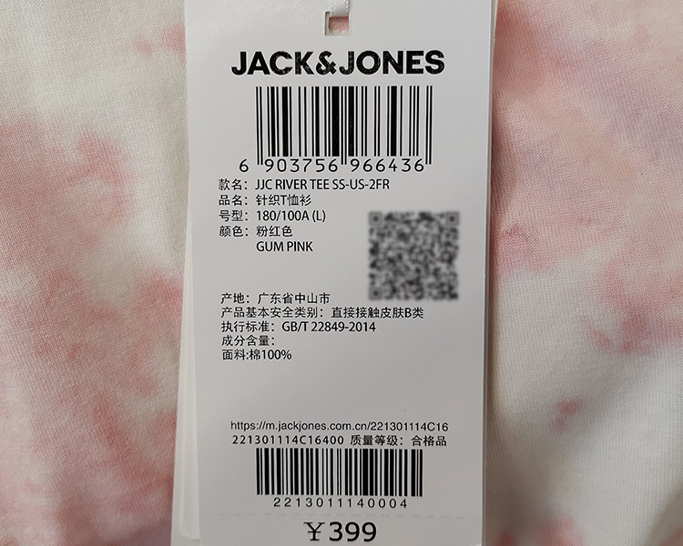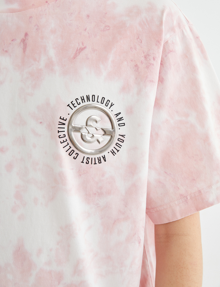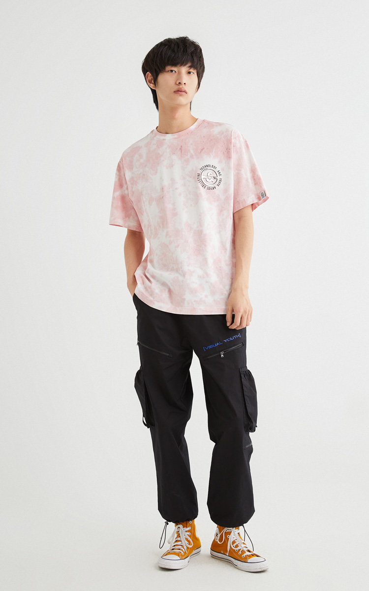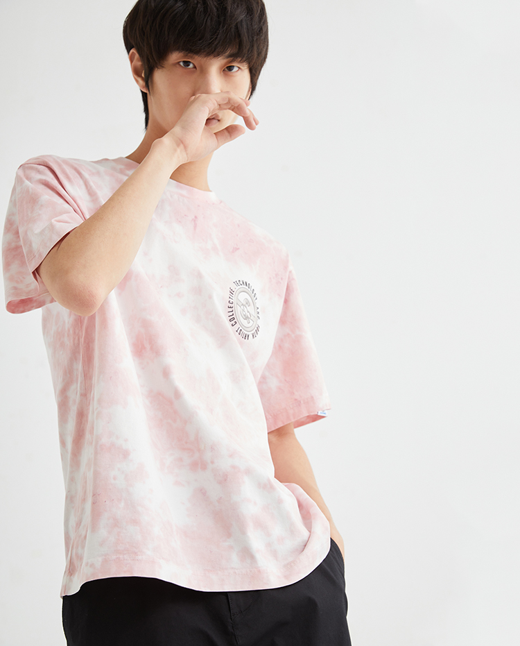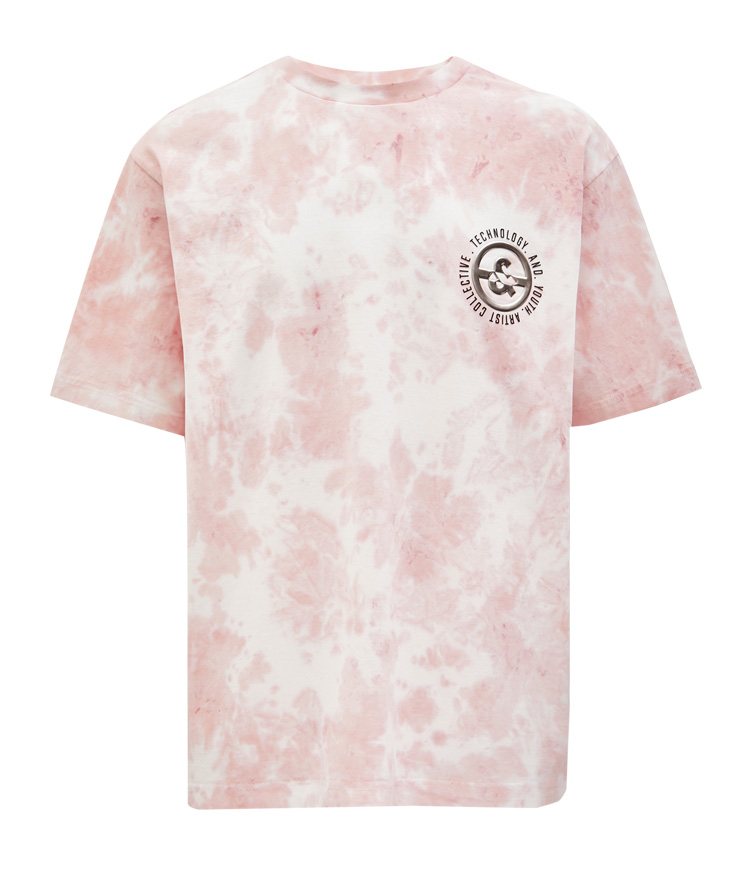 JackJones杰克琼斯夏休闲个性扎染字母印花纯棉宽松短袖T恤男士221301114 C16粉红色
