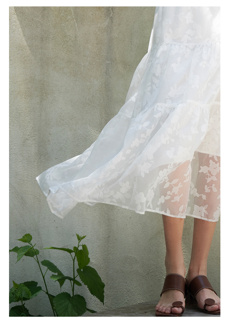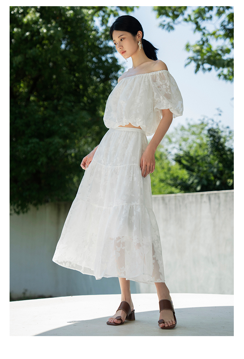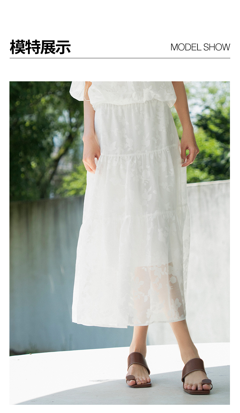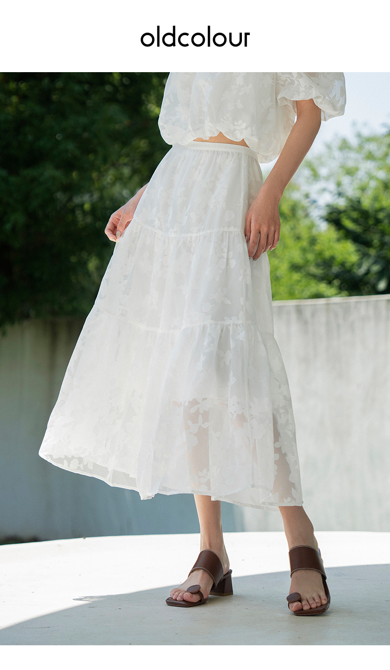 oldcolour夏新款白色气质设计感小众高腰印花半身长裙女Q250605A1