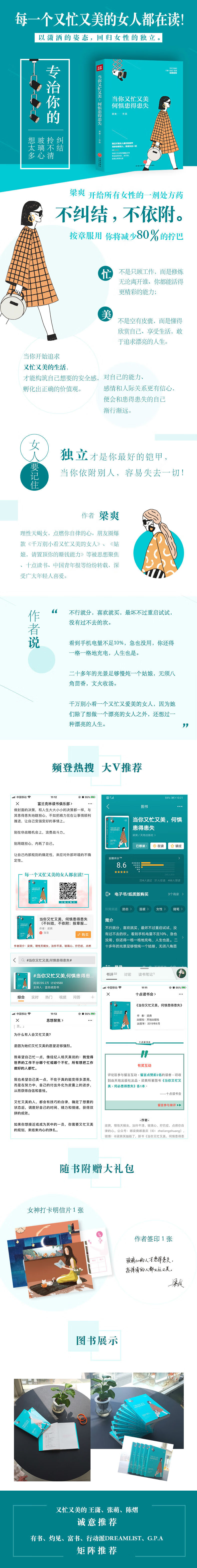 1、“又忙又美”是梁爽开给你的一剂处方,专治你的纠结、拎不清、玻璃心和想太多!常读一二,你将减少80%的拧巴!