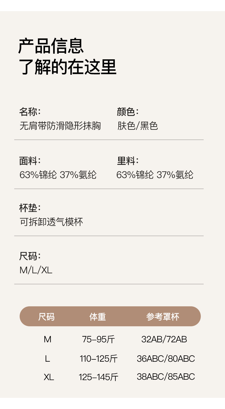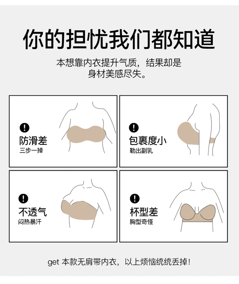 爆款粉底液无肩带防滑隐形抹胸女士文胸254