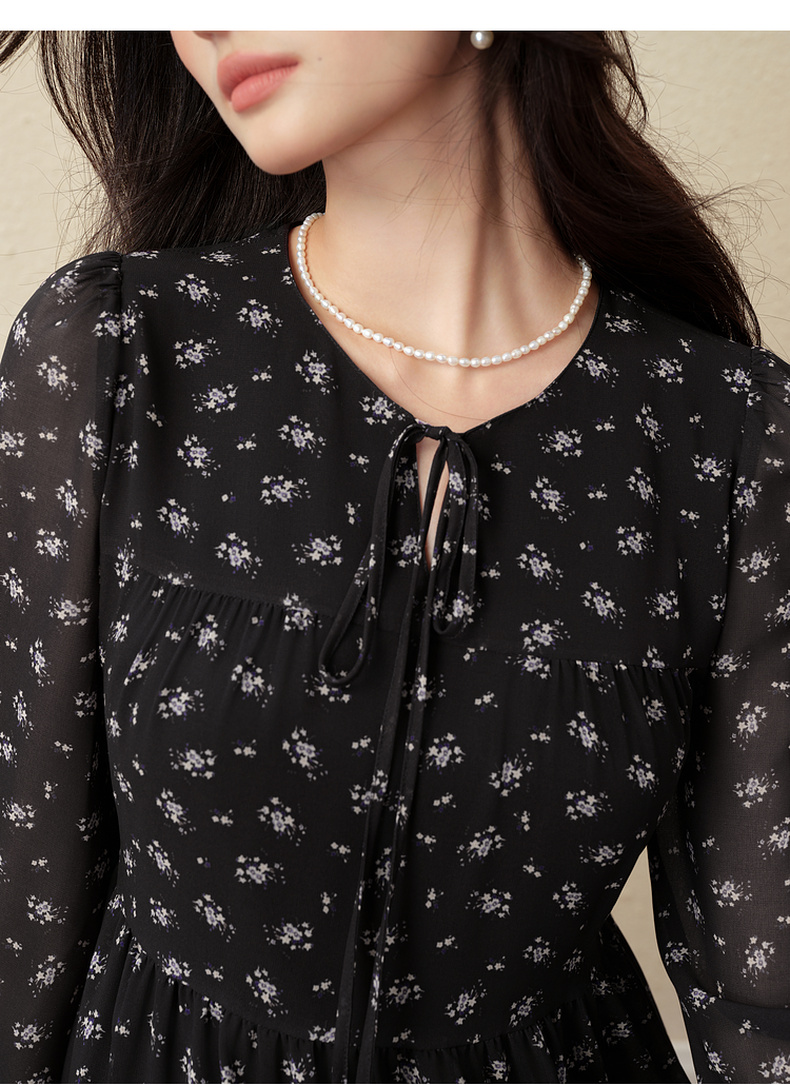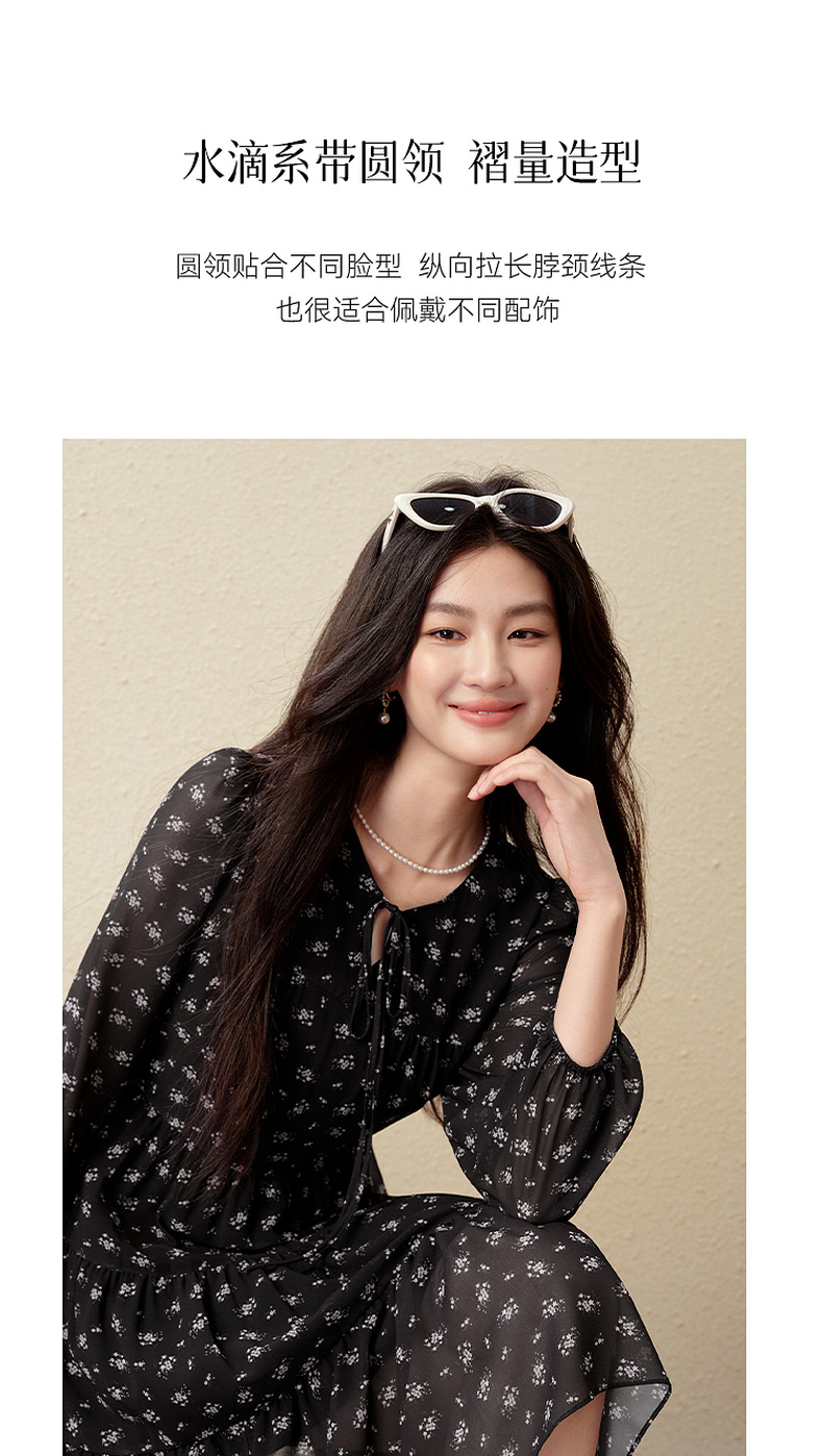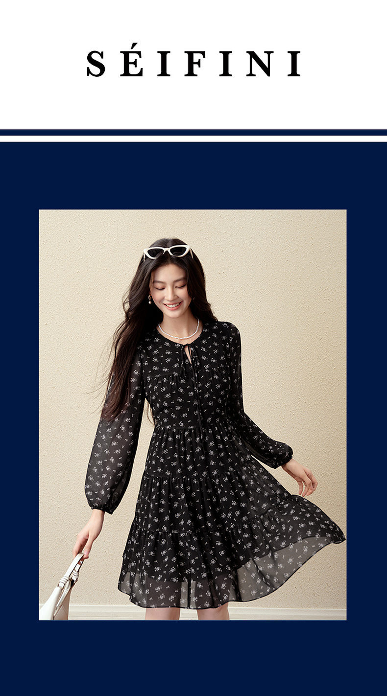 【严选】诗凡黎假日风碎花收腰雪纺连衣裙25秋新款法式浪漫显瘦系带蓬蓬裙7G7490791
