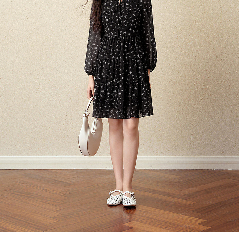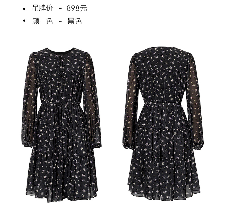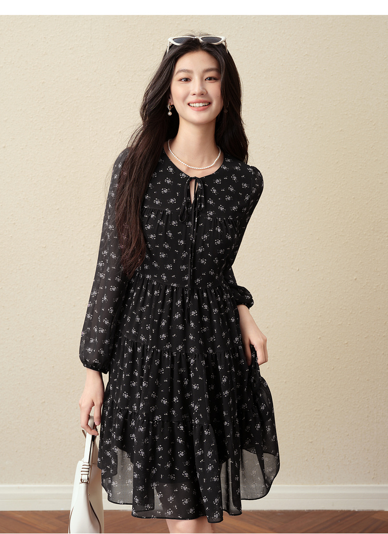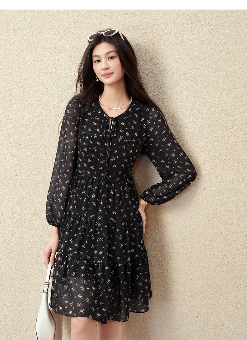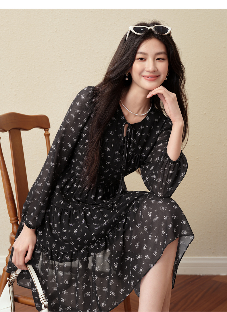 【严选】诗凡黎假日风碎花收腰雪纺连衣裙25秋新款法式浪漫显瘦系带蓬蓬裙7G7490791