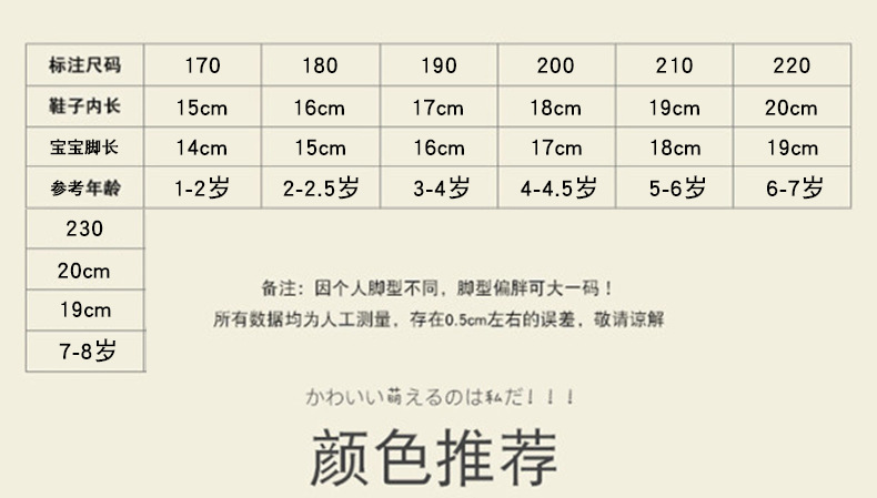 170 内长15CM(适合脚长14厘米)180 内长16CM(适合脚长15CM)有松紧带