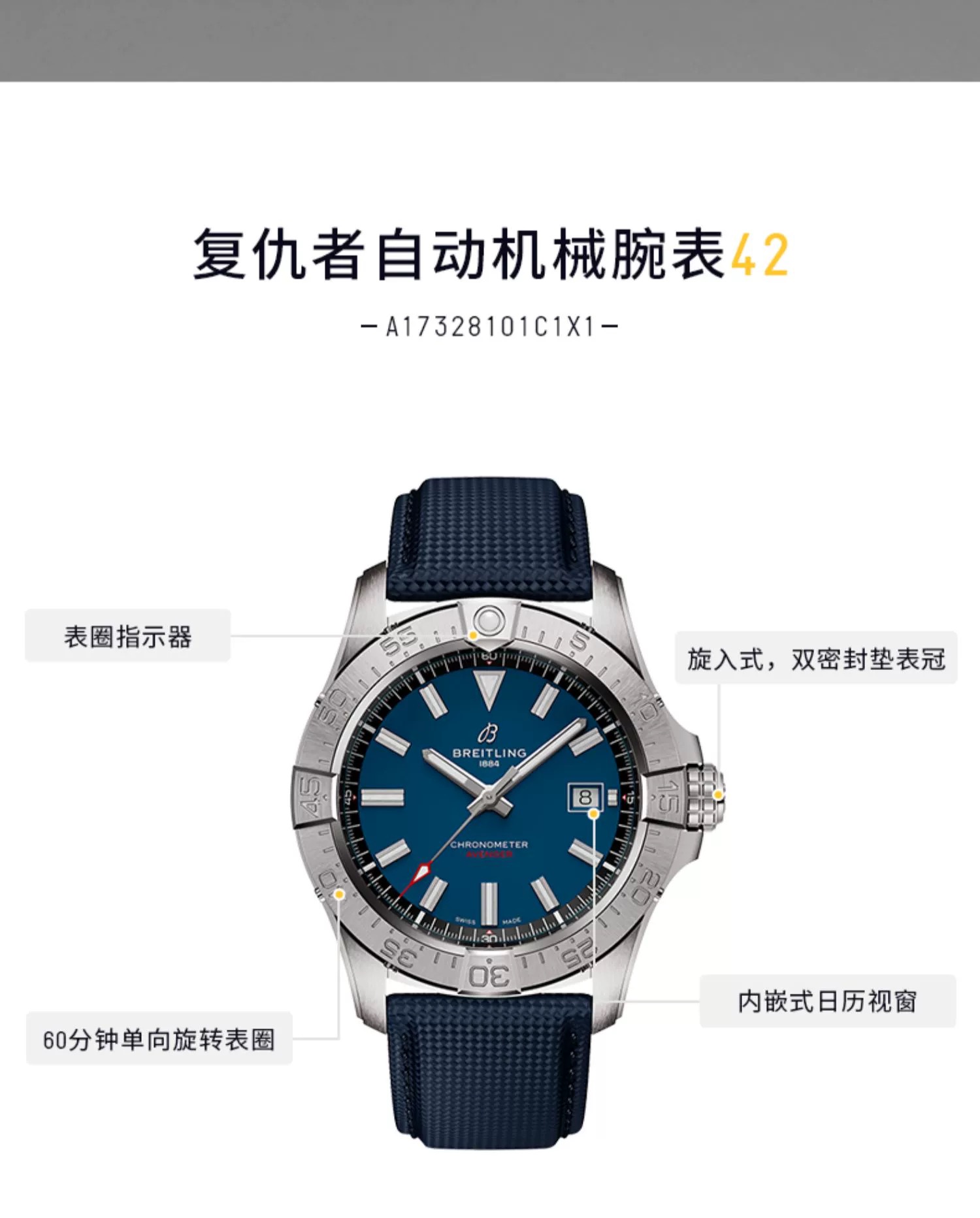 百年灵复仇者自动机械腕表42毫米 A17328101C1X1