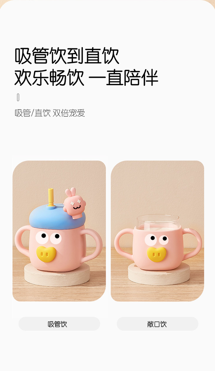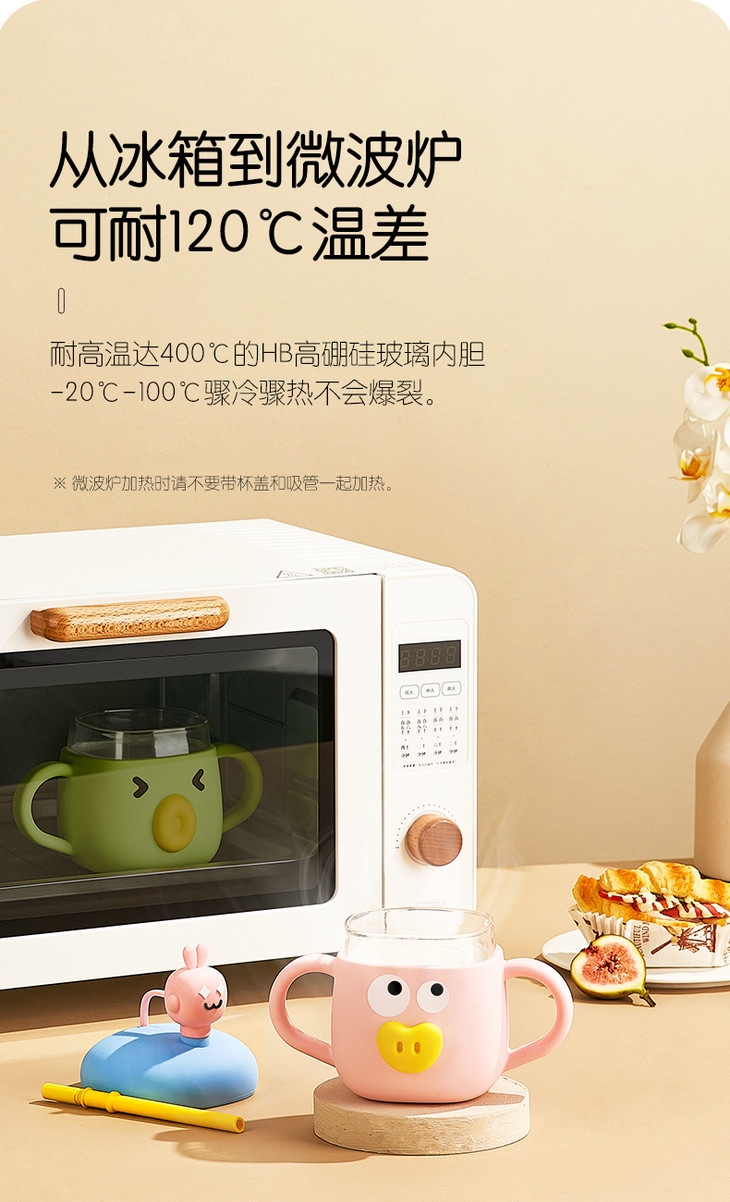 beedoll牛奶杯高硼硅儿童带刻度防摔吸管杯喝泡奶粉杯子微波炉可加热宝宝高颜值玻璃杯