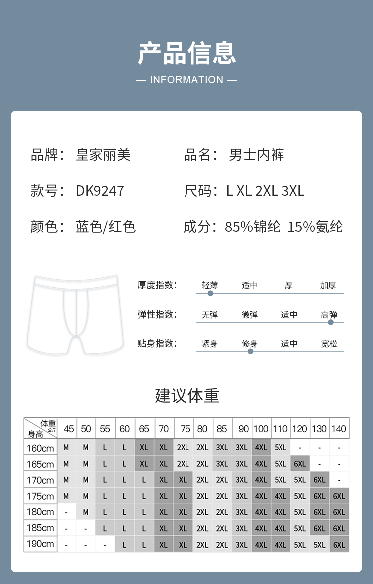 皇家丽美棉裆光滑冰丝平角裤花样男式四角短裤头DK9247