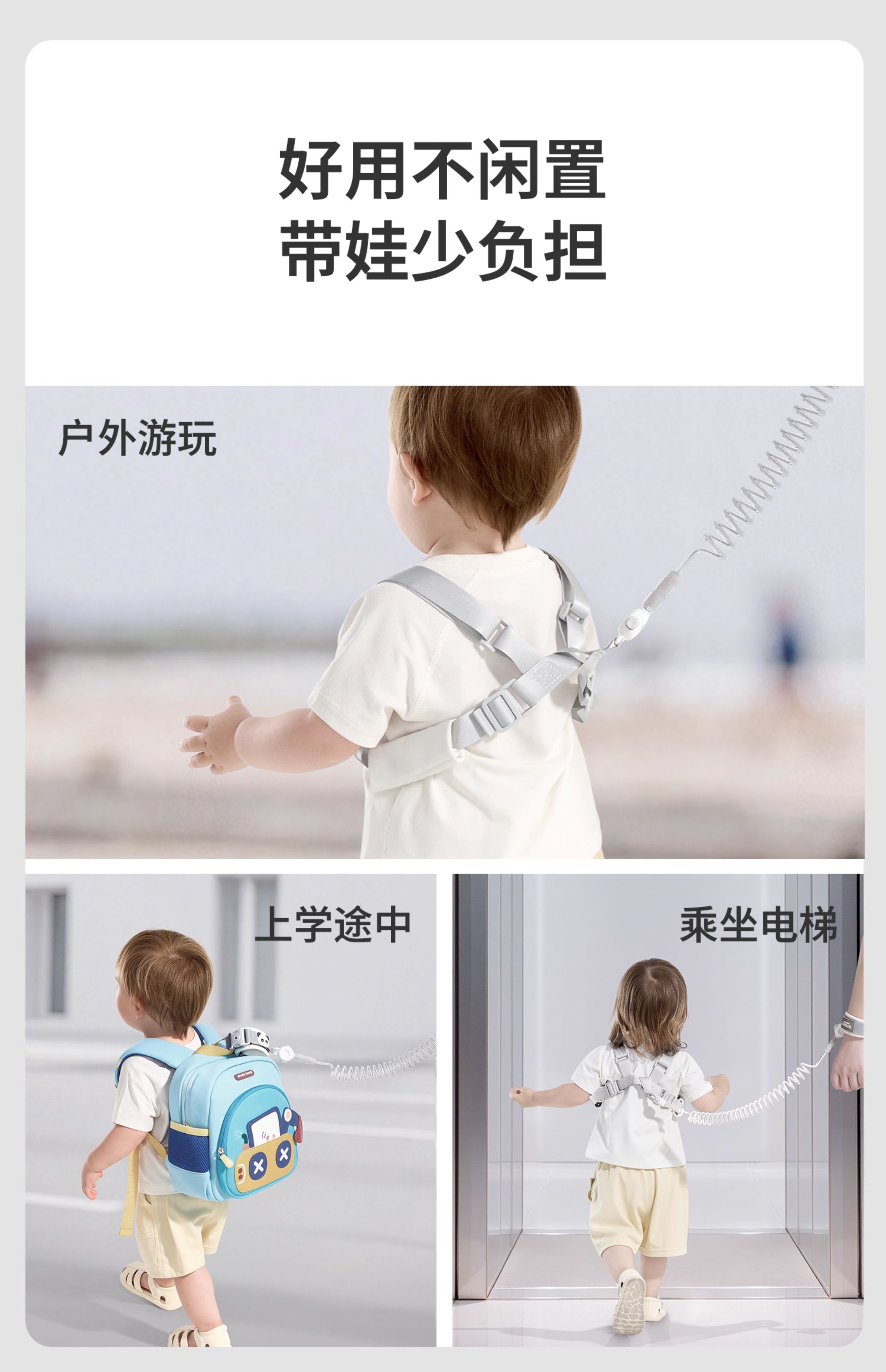 儿童防丢走丢带牵引绳背带宝宝防走失神器小孩子丢失遛娃安全手环