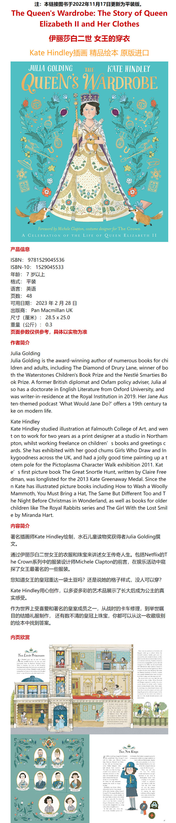 【中商原版】The Queen's Wardrobe The Story of Queen Elizabeth II and Clothes 伊丽莎白二世女王穿衣 英文原版 进口图书