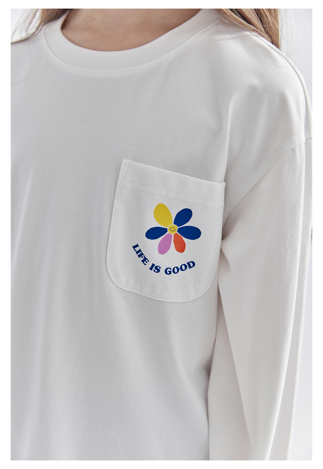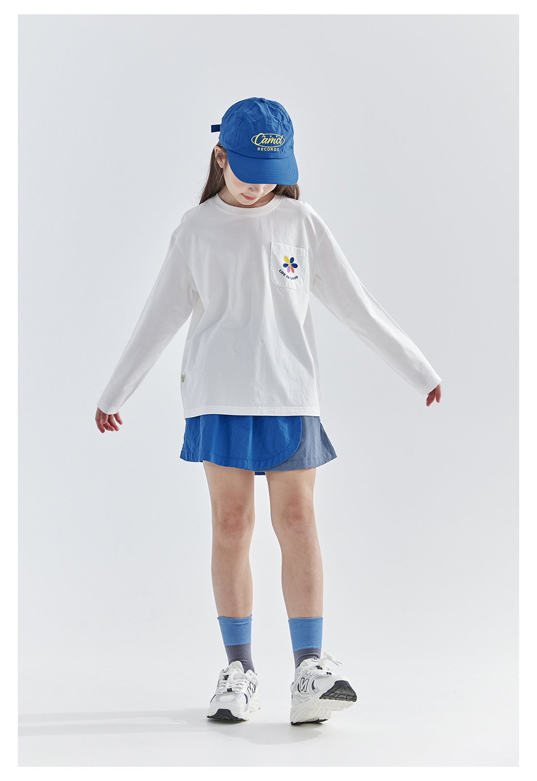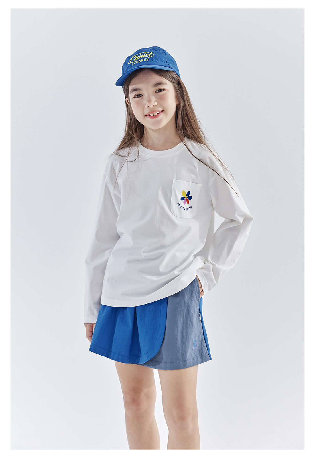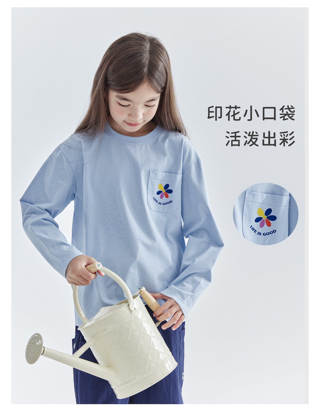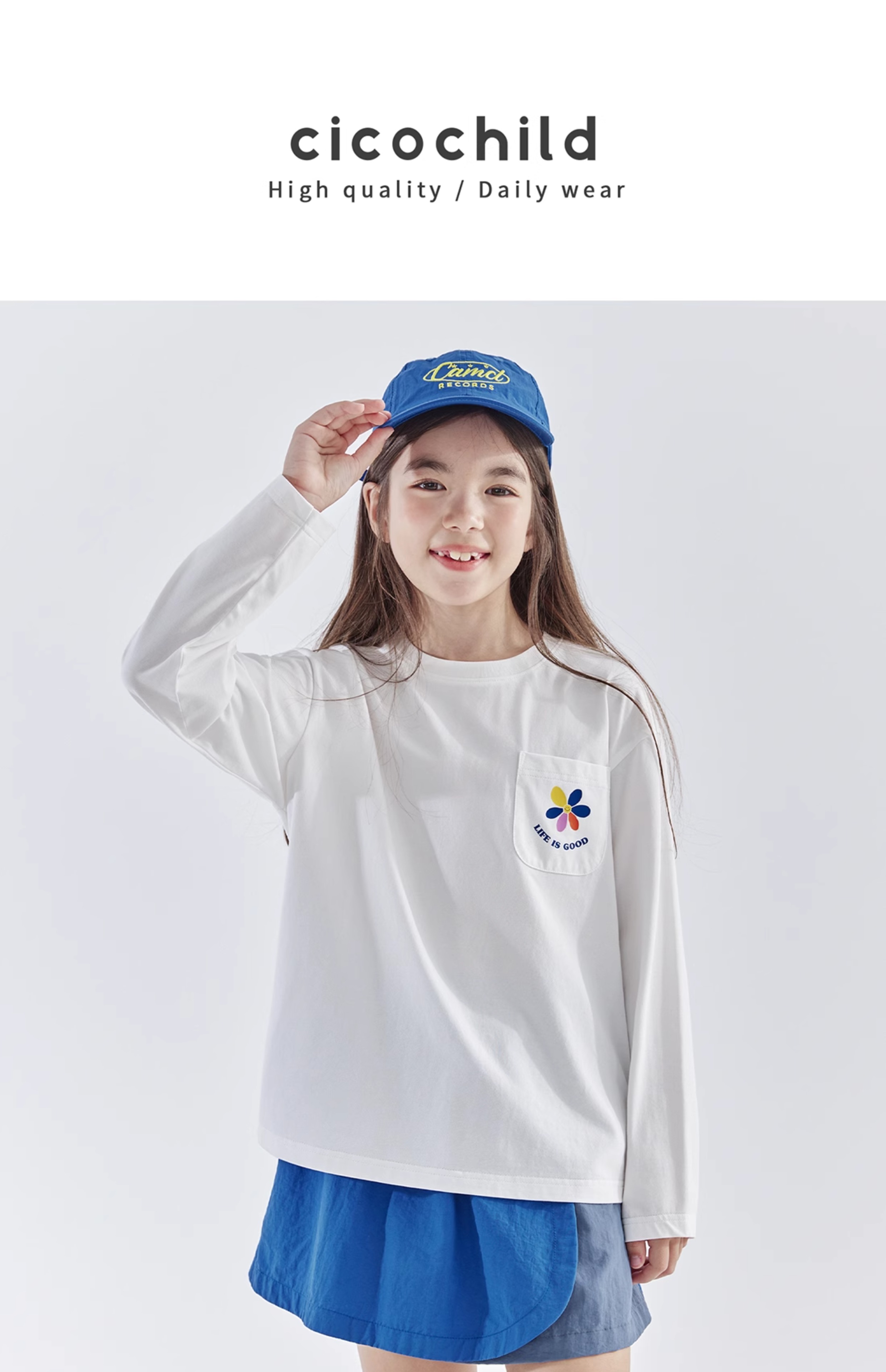 【代发】女款小贴袋长袖T恤 cicochild童装百搭套头衫女童凉感抑菌上衣印花小贴袋长袖T恤