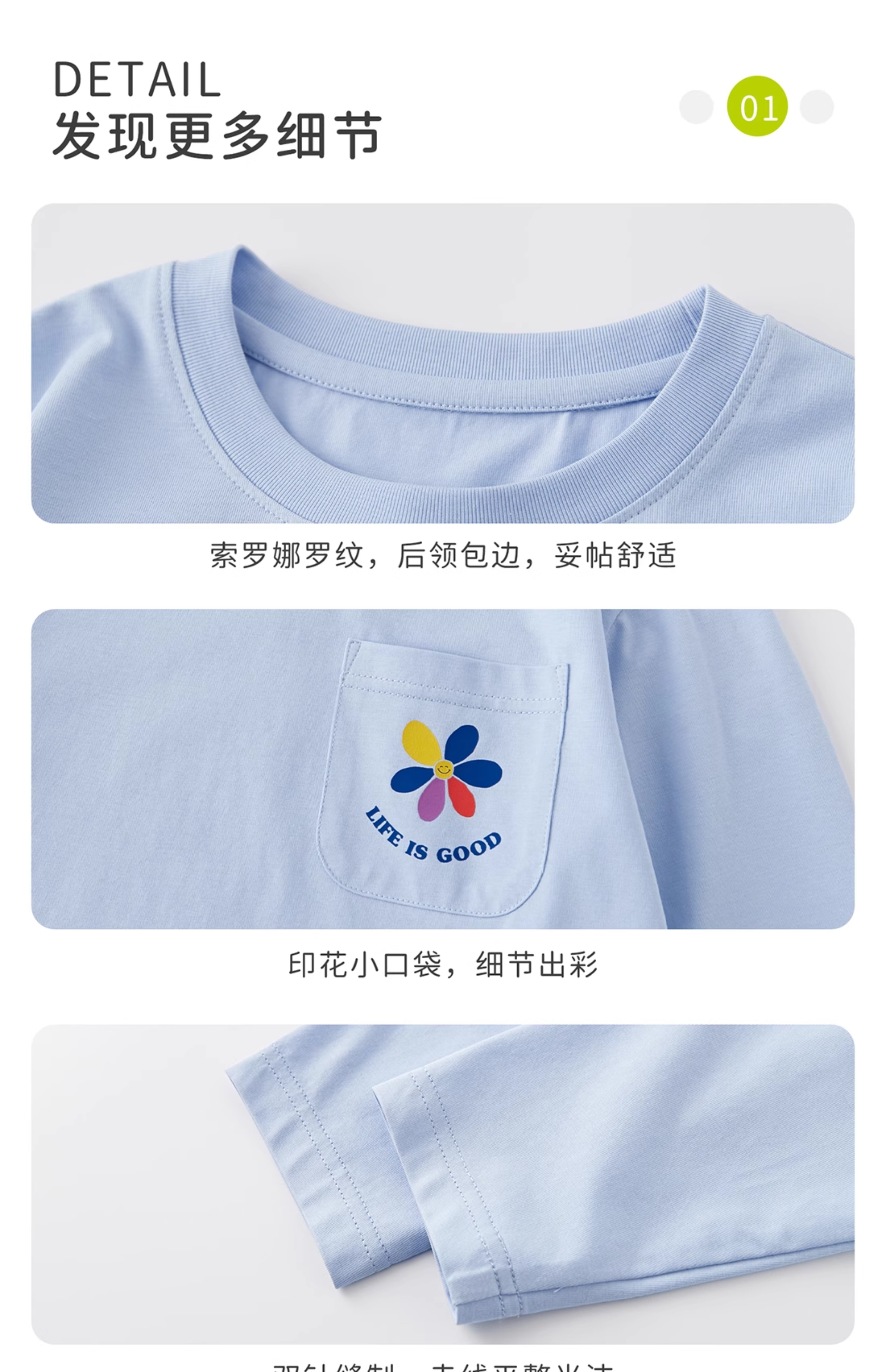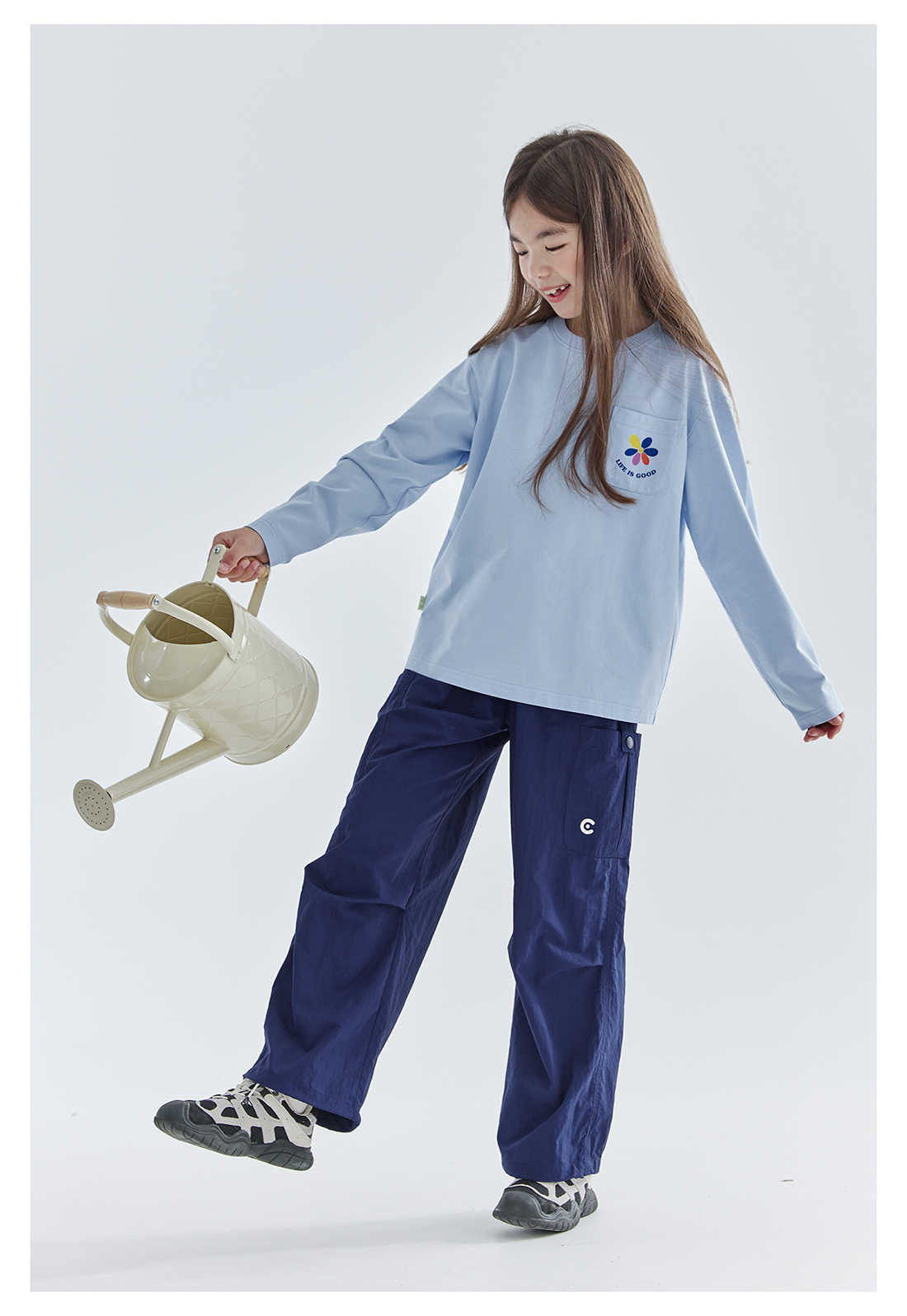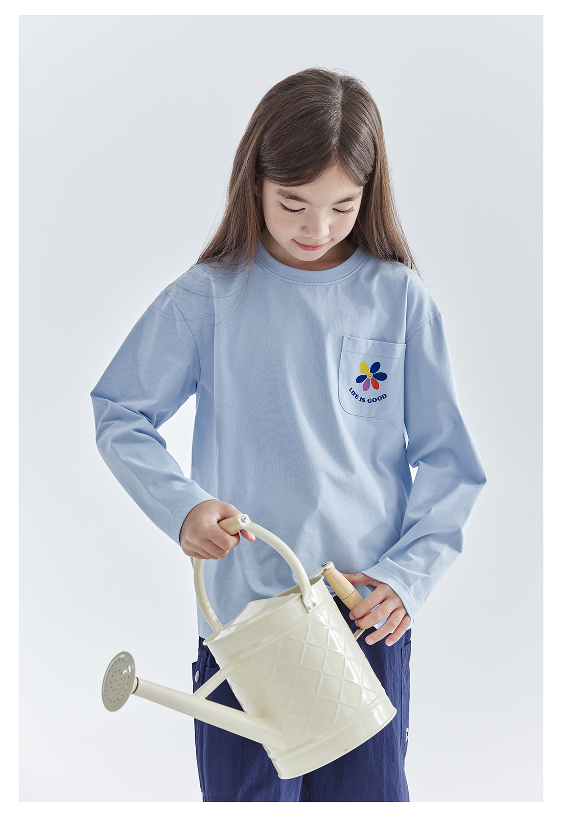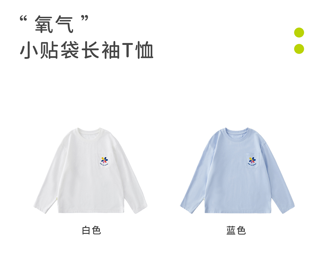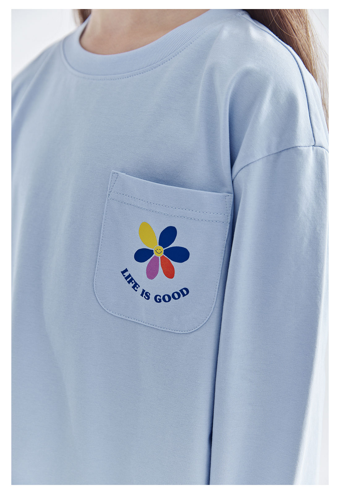 【代发】女款小贴袋长袖T恤 cicochild童装百搭套头衫女童凉感抑菌上衣印花小贴袋长袖T恤