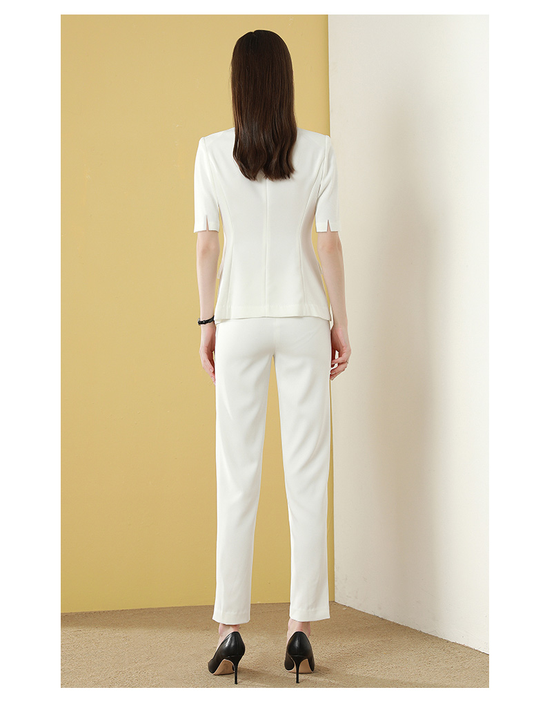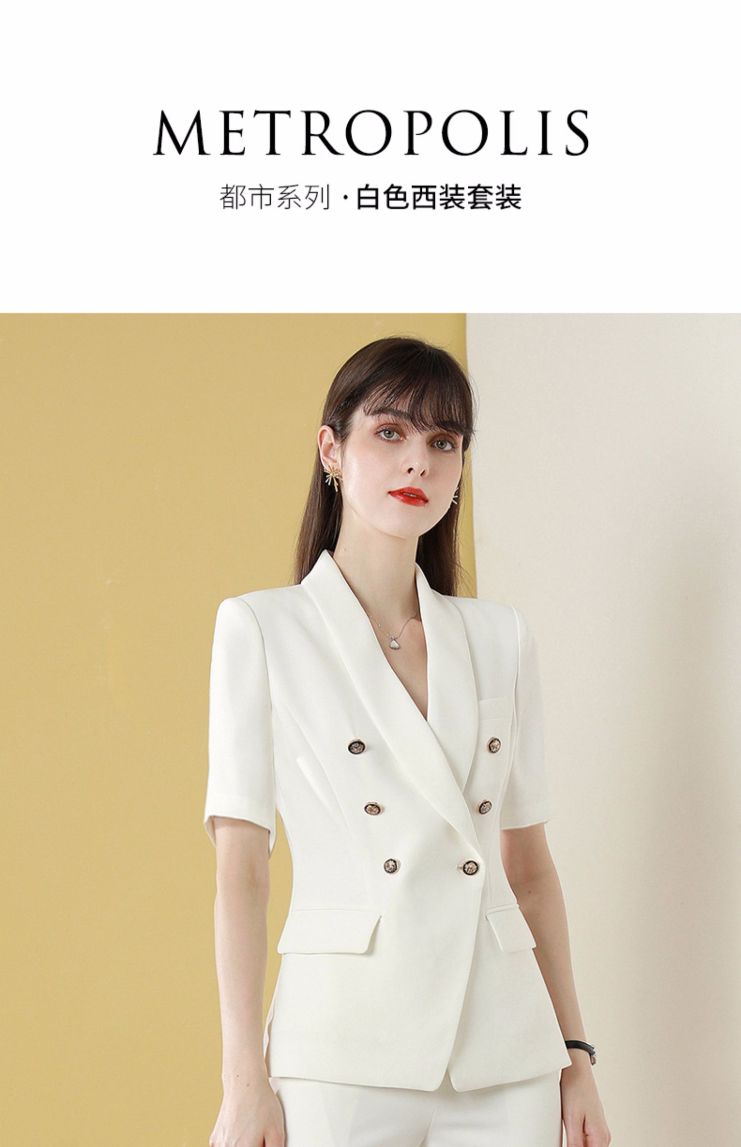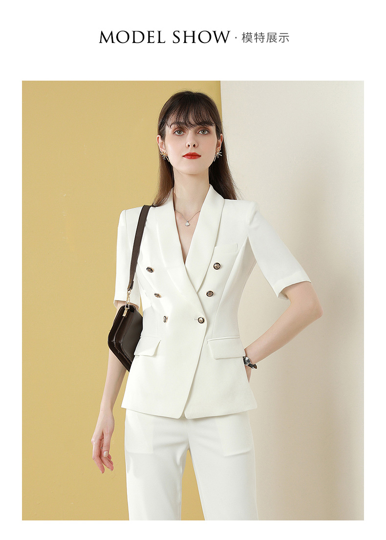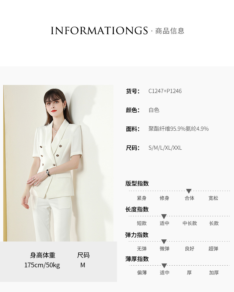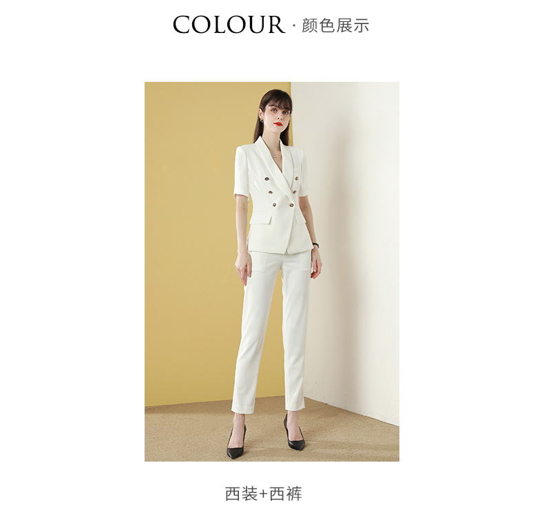 IWY/白色高端职业装女西装套装时尚短袖工作服气质ol正装外套女C1247+P1246